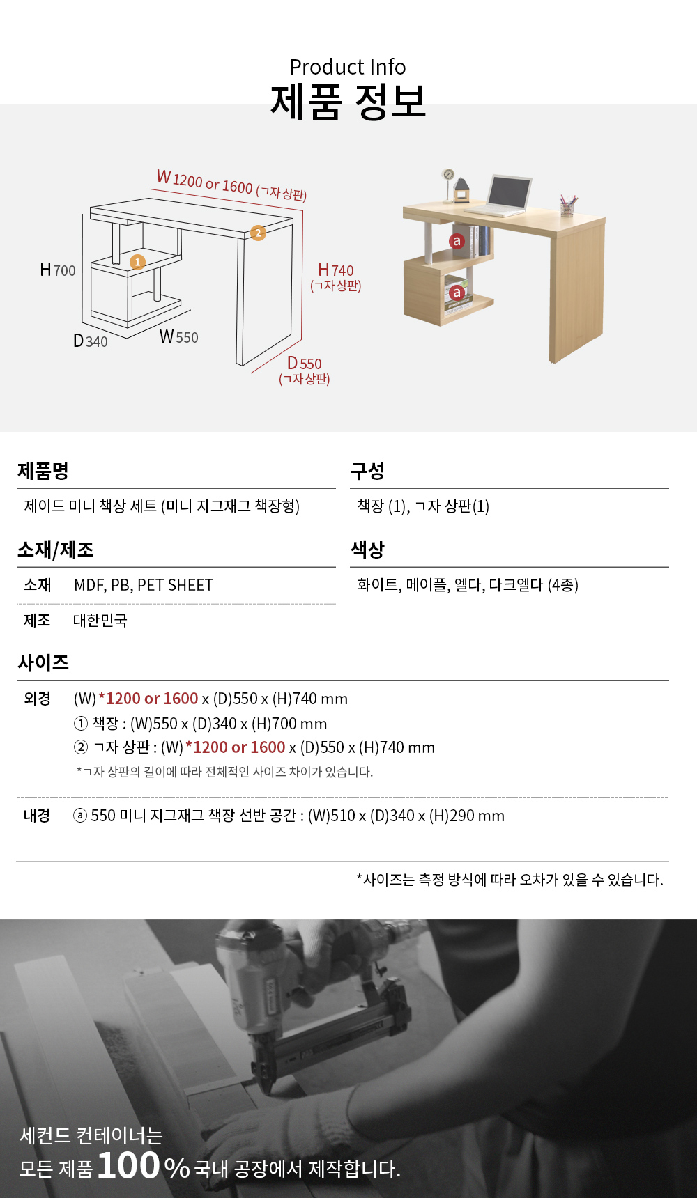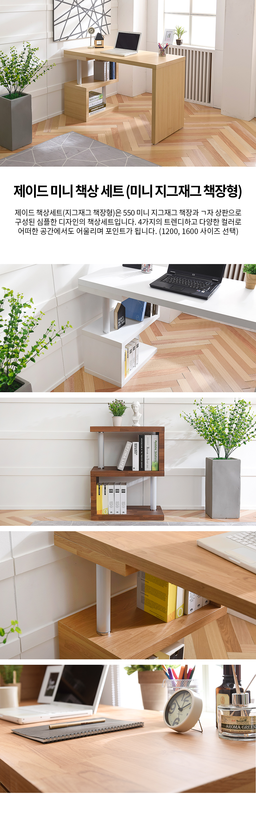 제이드 1200 미니 책상 세트 (미니 지그재그 책장형)