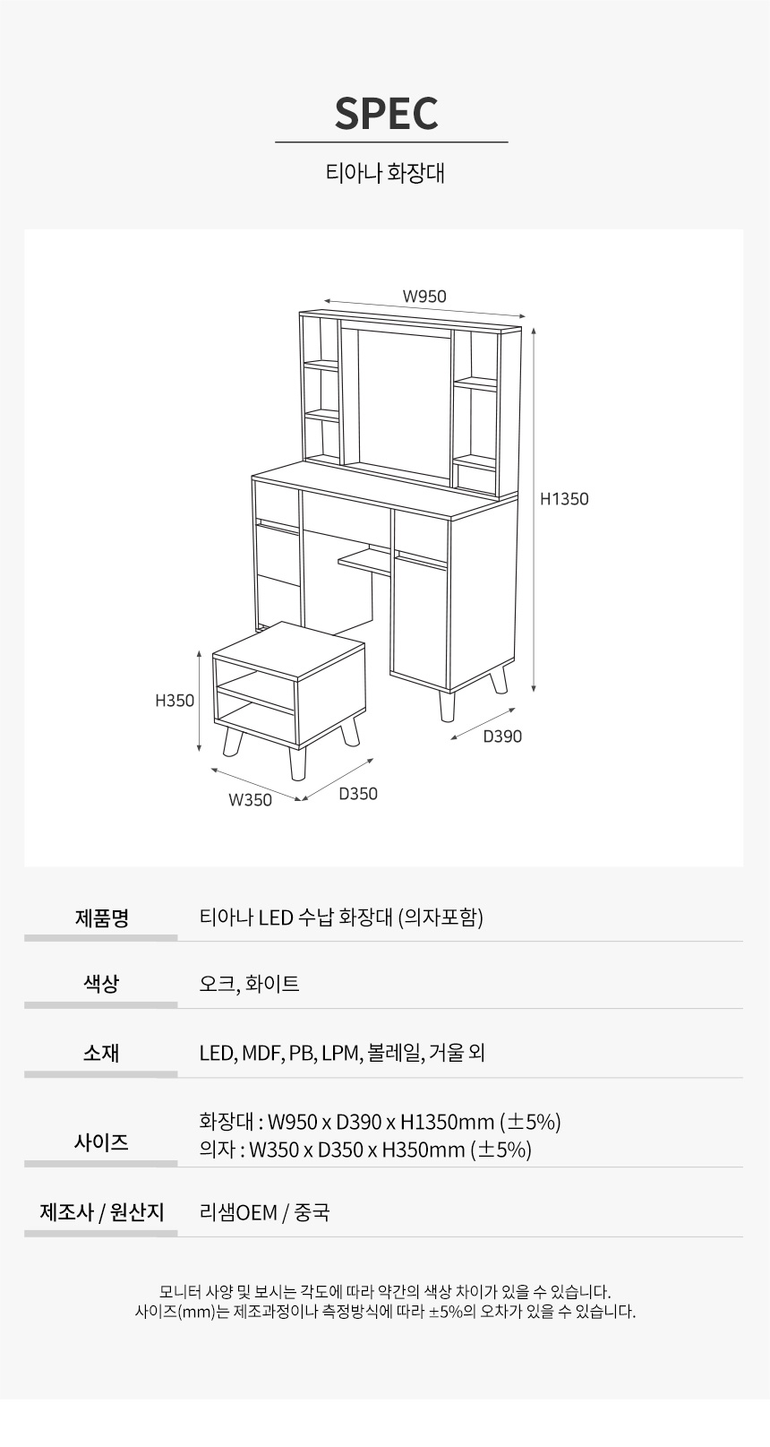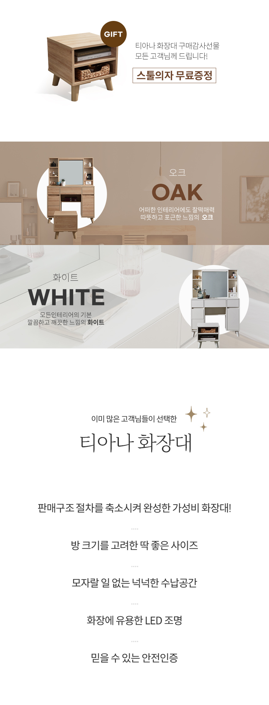 지정일 배송 // 파로마 티아나 LED 수납 서랍 화장대세트(스툴포함)