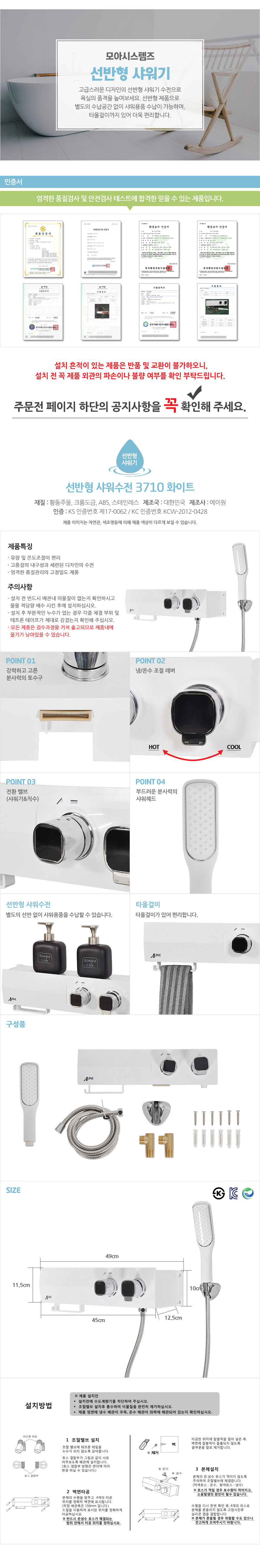 모아시스템즈 선반형 샤워기 수전 A3710 화이트 욕실수전