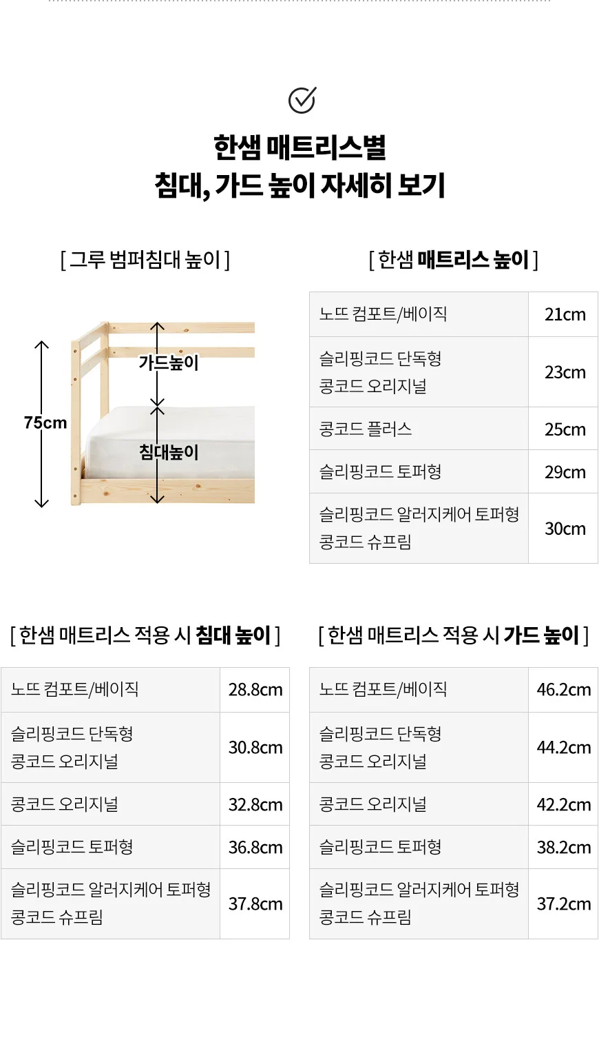 그루 원목 범퍼침대 SS+노뜨 매트리스