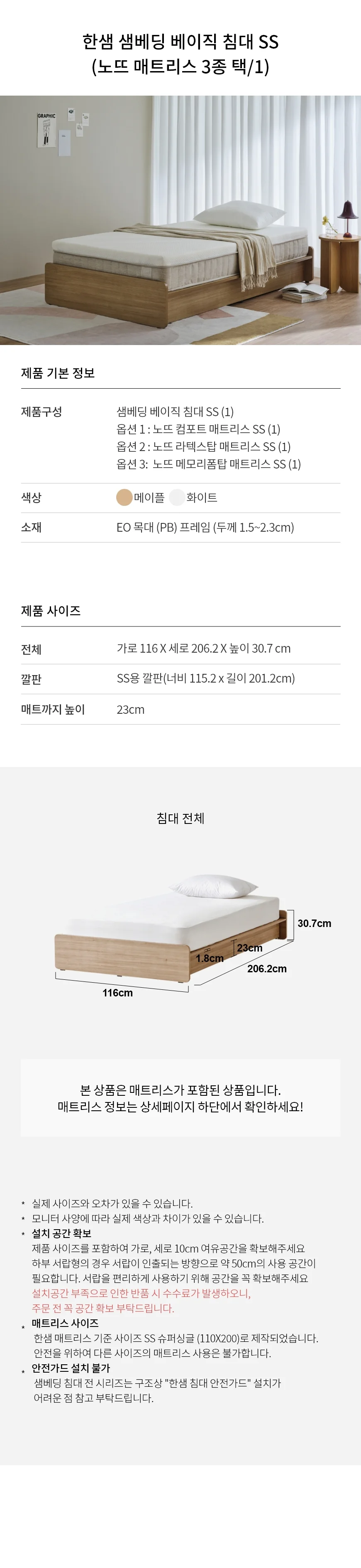 샘베딩 베이직 침대 SS+노뜨 매트리스
