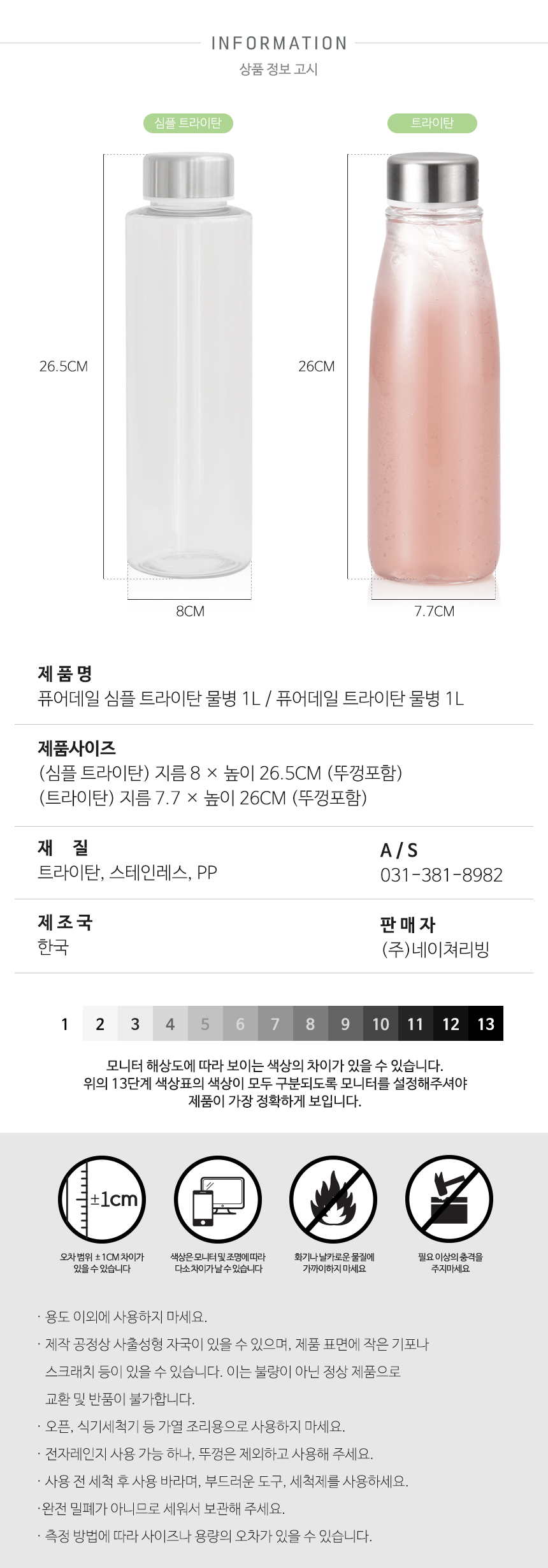 1+1 퓨어데일 트라이탄 물병 1L 2종