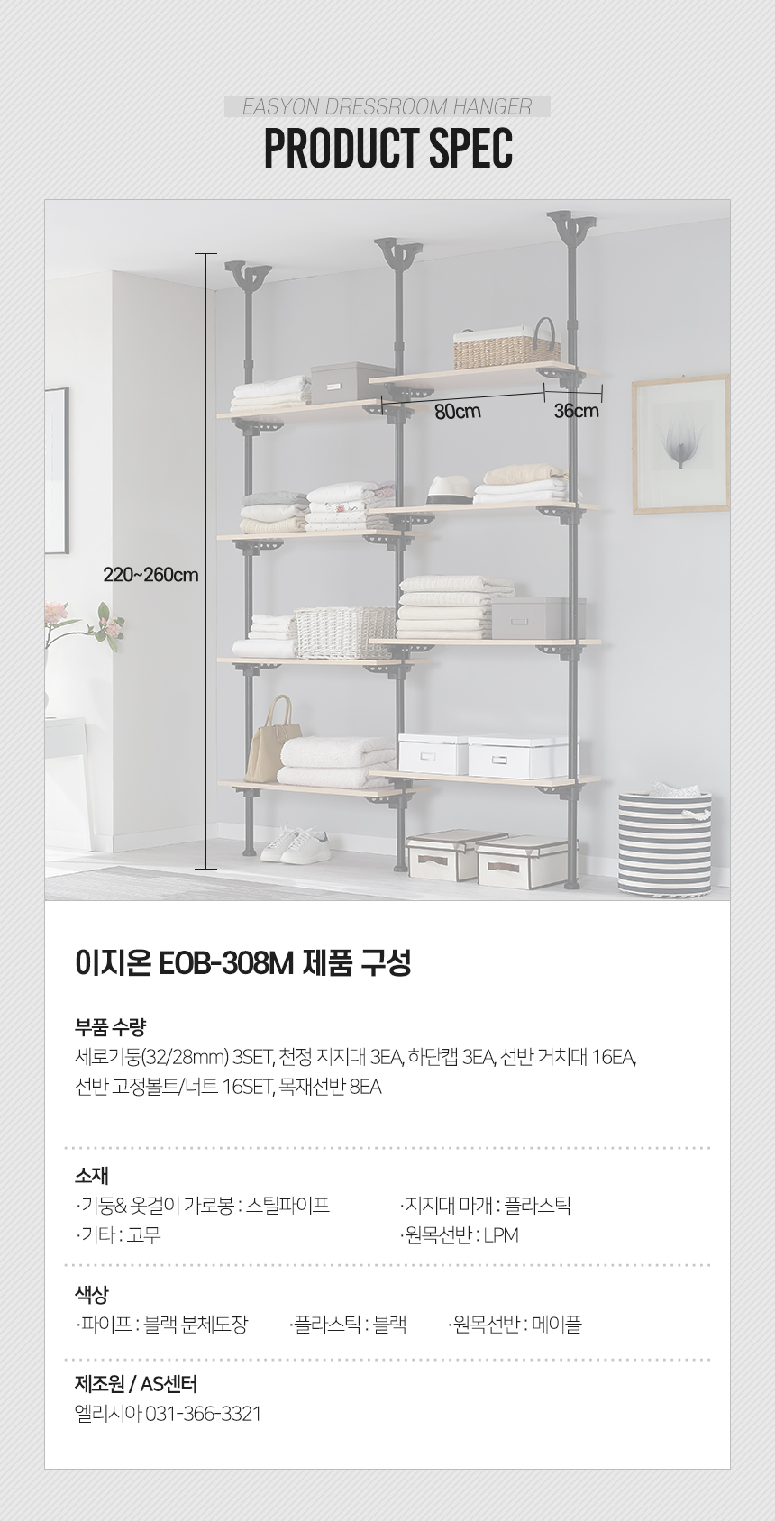 이지온 드레스룸 EOB-308M 시스템 선반 행거 고급원목선반
