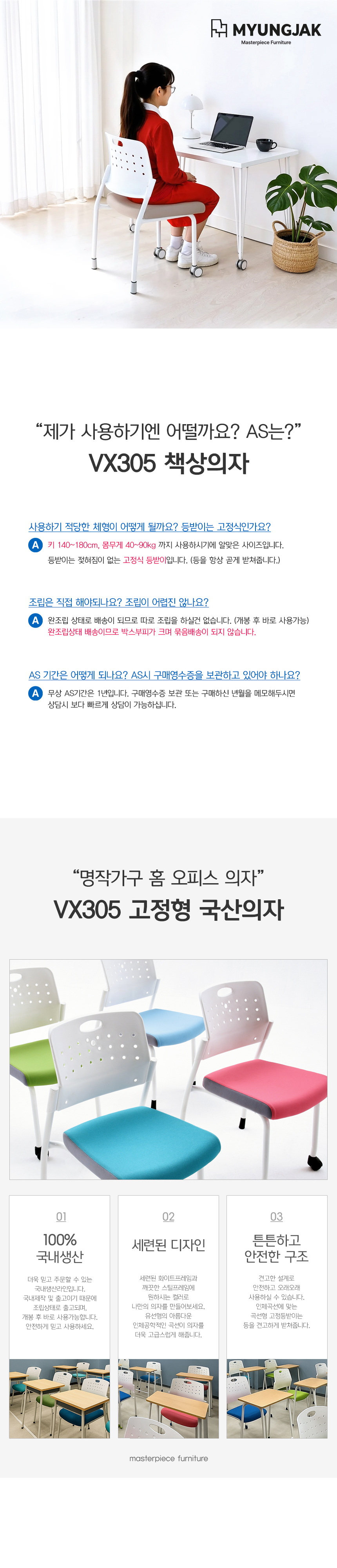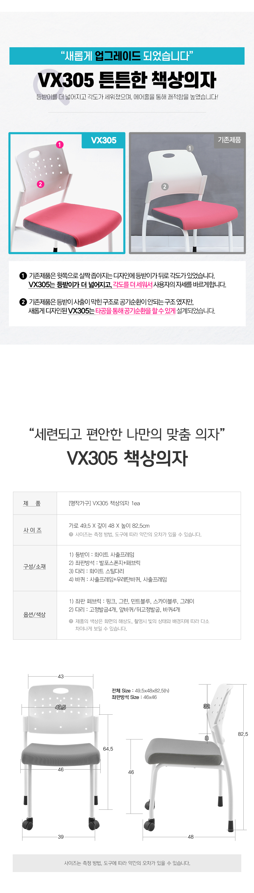 VX305시리즈 #책상의자 #학생용의자 #공부의자 #독서실의자 #회의용의자 #편안한방석