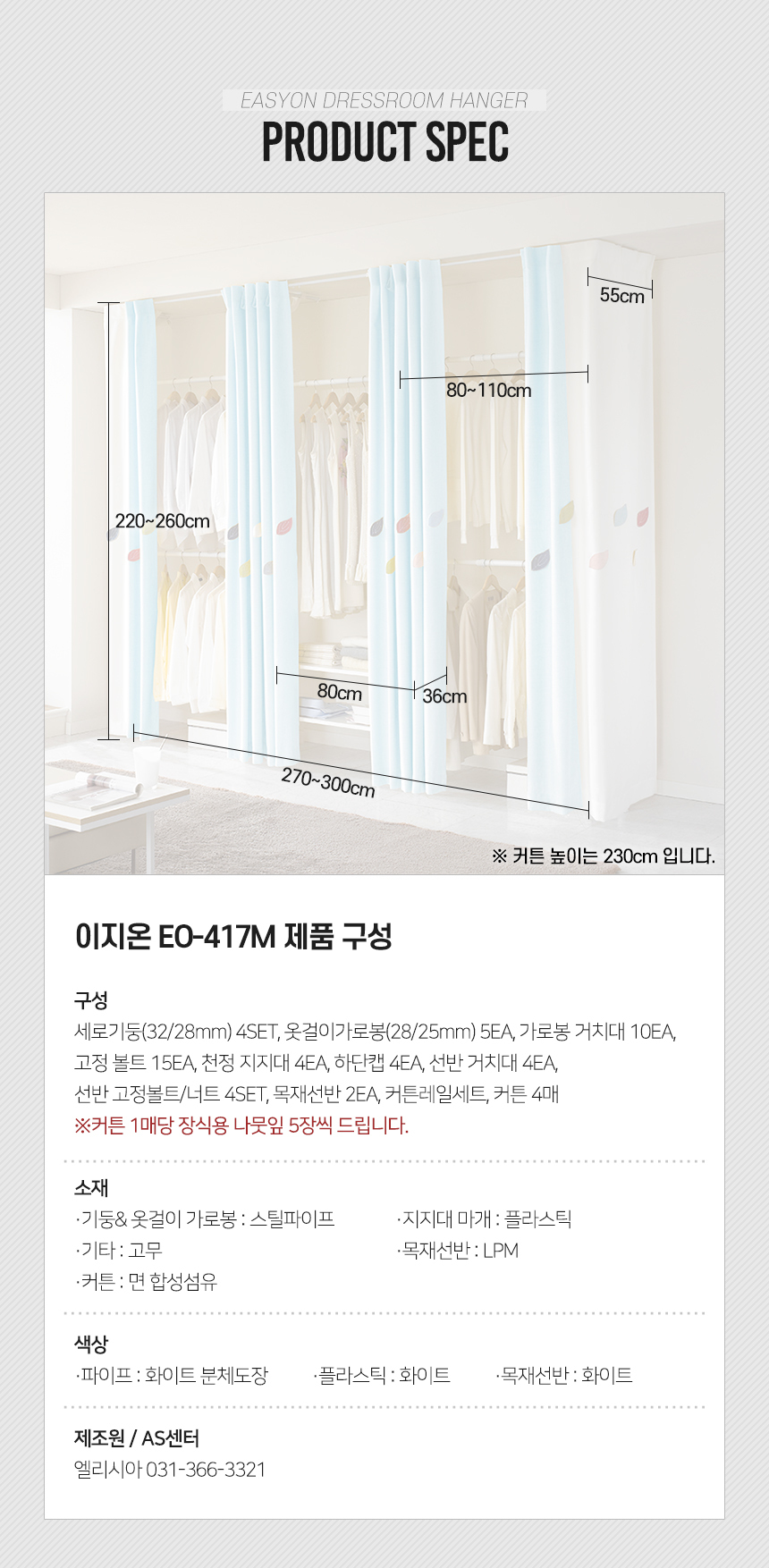 이지온 드레스룸 EO-417M 커튼행거 고급원목선반