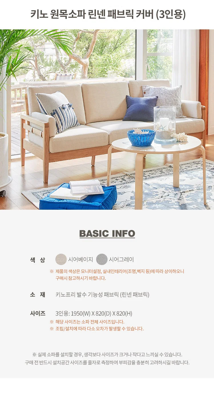 (한샘몰pick) 더메이드 키노(kino) 린넨 패브릭 3인 소파 커버