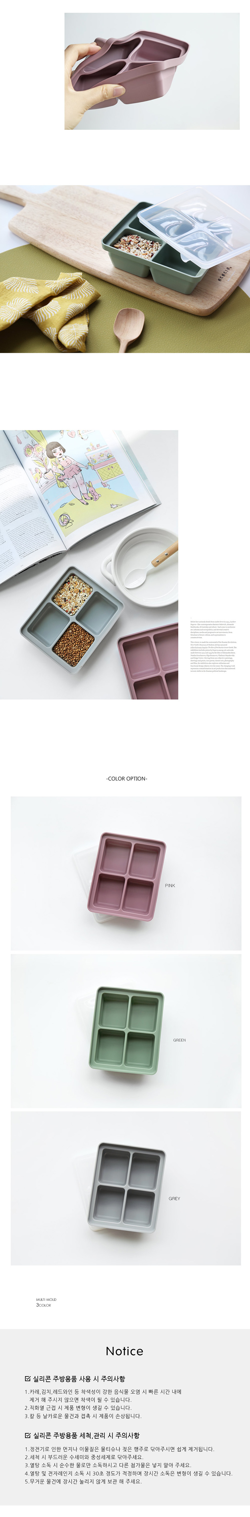 뚜껑이 있어 냉동시 더욱 위생적이며 말랑말랑한 실리콘 재질로 얼린 내용물을 분리하기 쉽습니다.