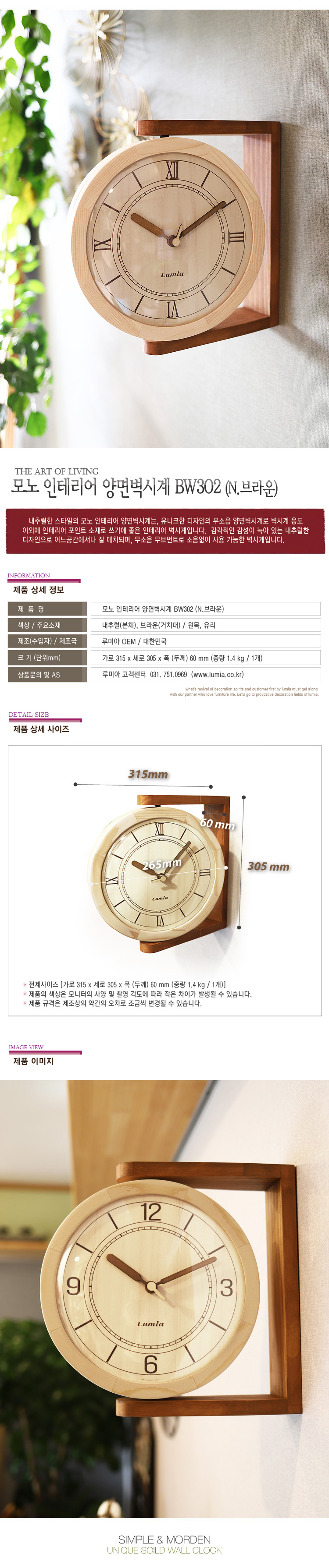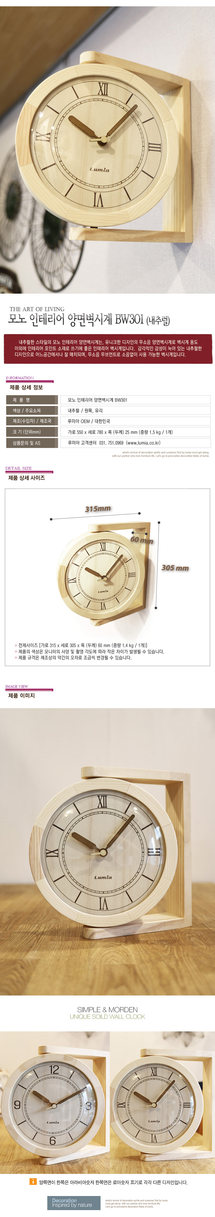 모노 인테리어 양면벽시계 BW301