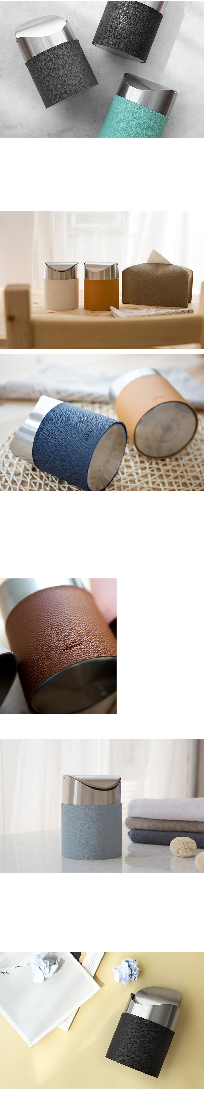 스텐레스 재질 휴지통에 PU소재 커버를 입힌