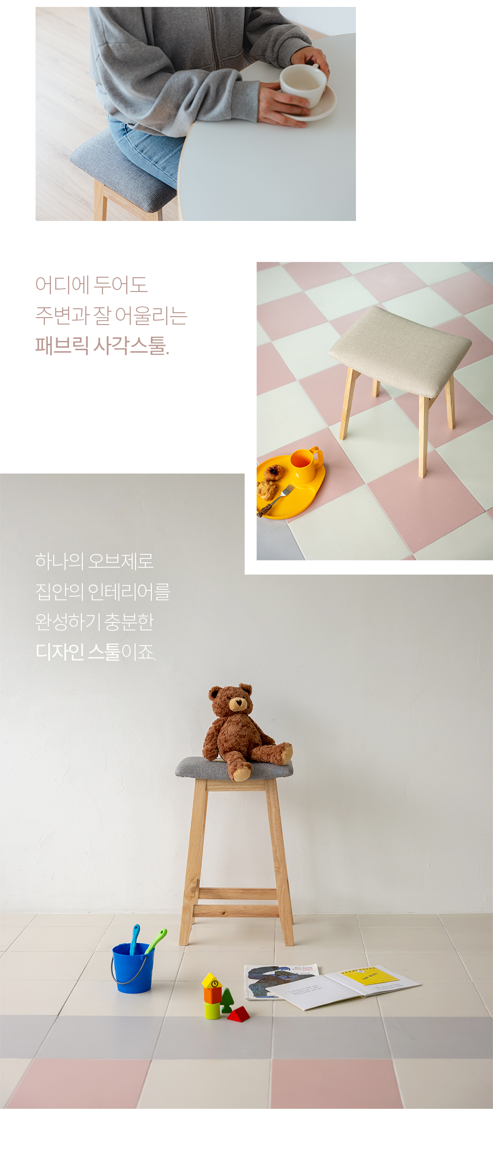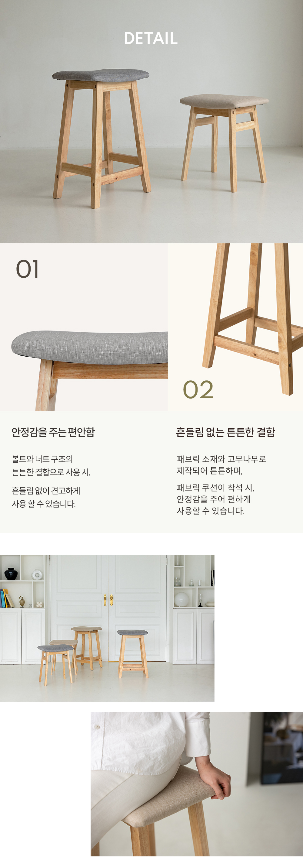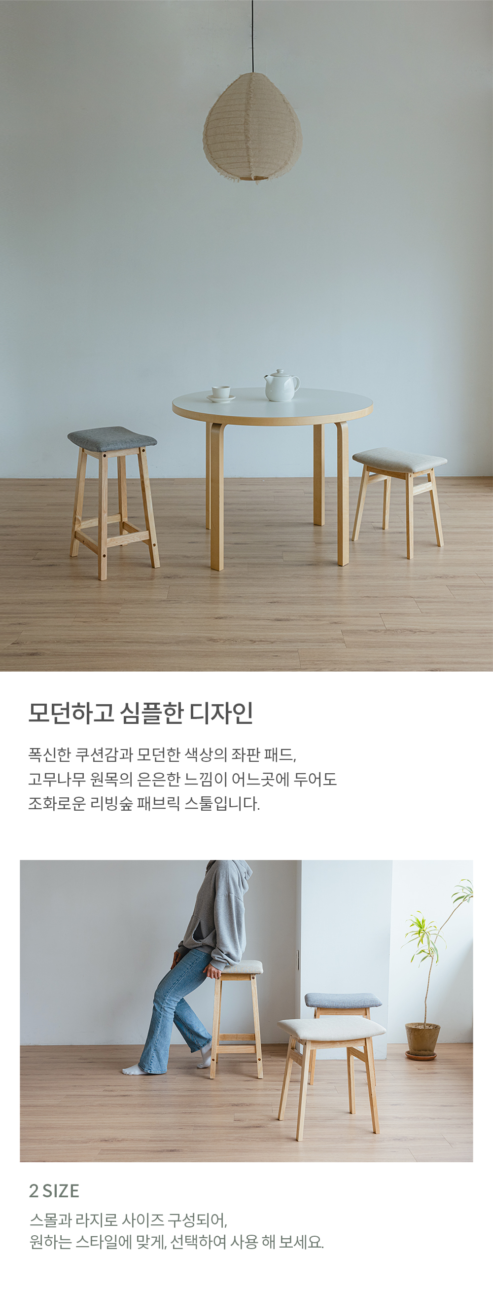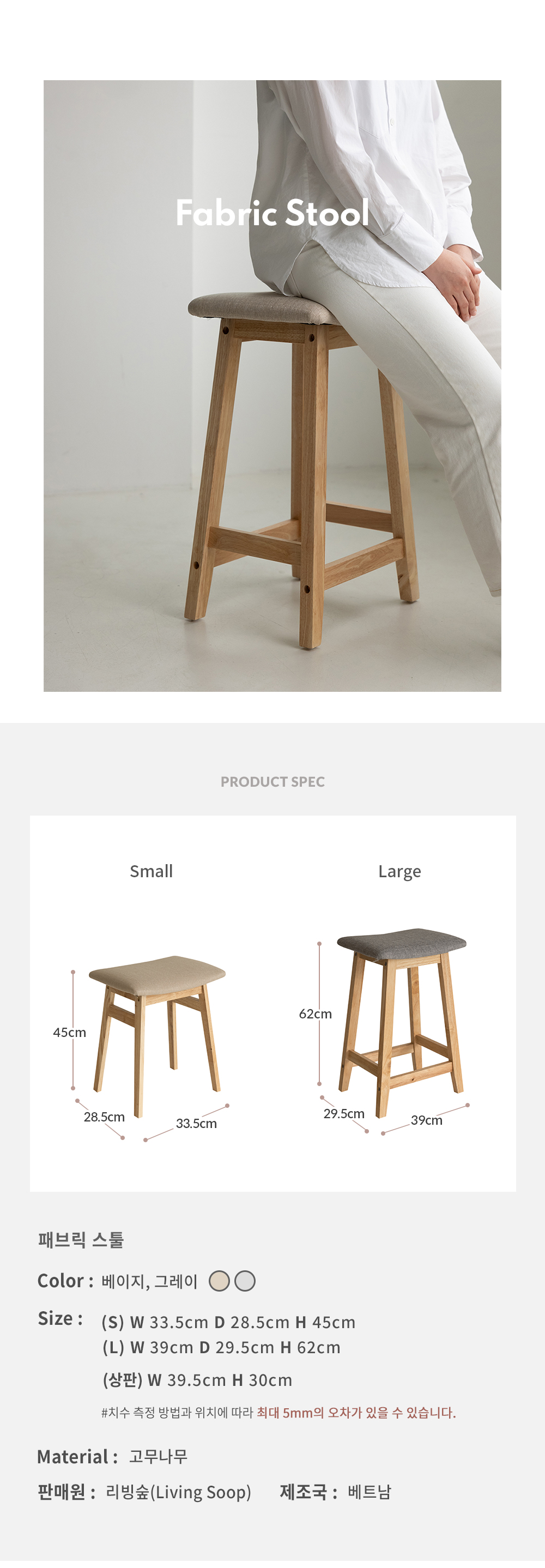 [특가 ~12/22]리빙숲 원목 패브릭 스툴 2colors/화장대의자