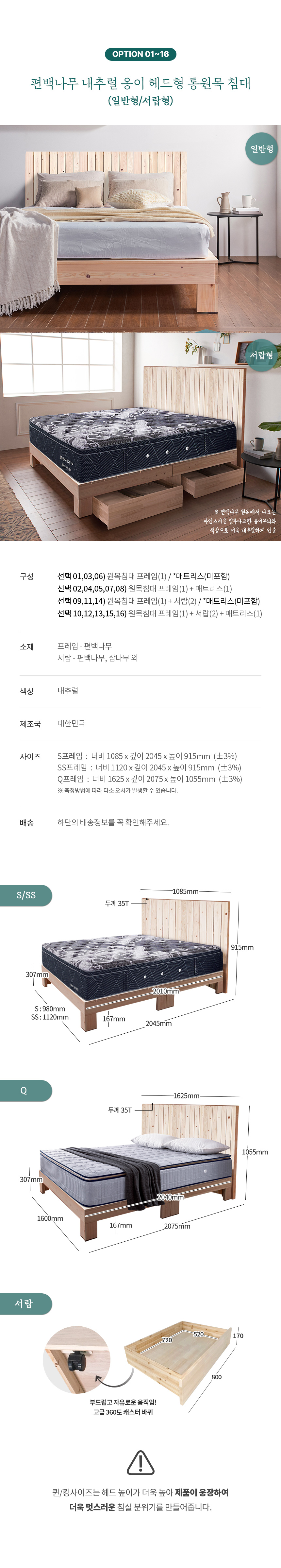 동서가구 내추럴 슬림헤드 편백나무 ALL 프레임 원목 편백침대 (S/SS/Q) DF640948