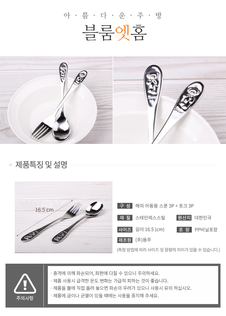 해피 아동용 스푼+포크 6P (벌크)