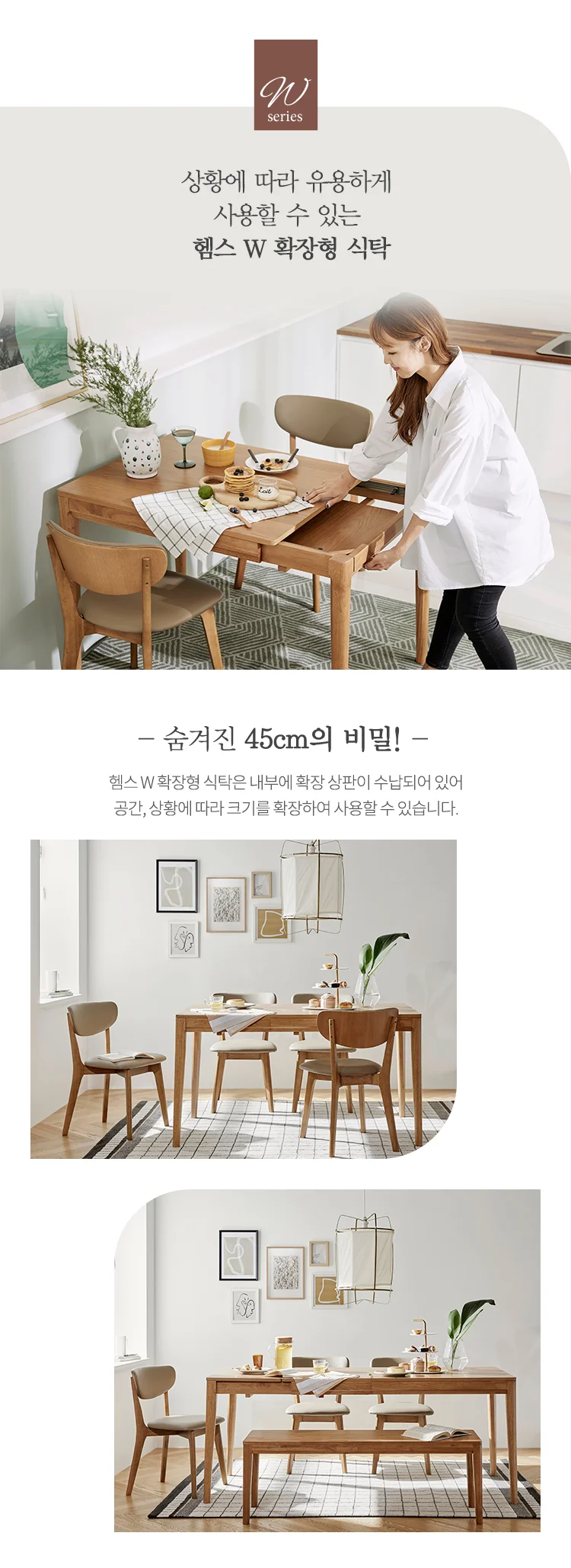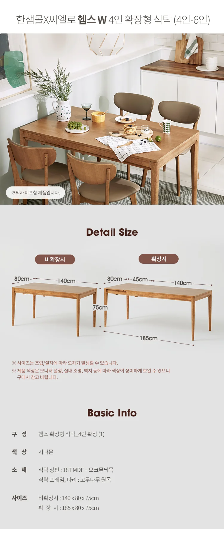(한샘몰pick) 씨엘로 헴스 W 확장형 식탁 4인 6인 원목 1400 1800
