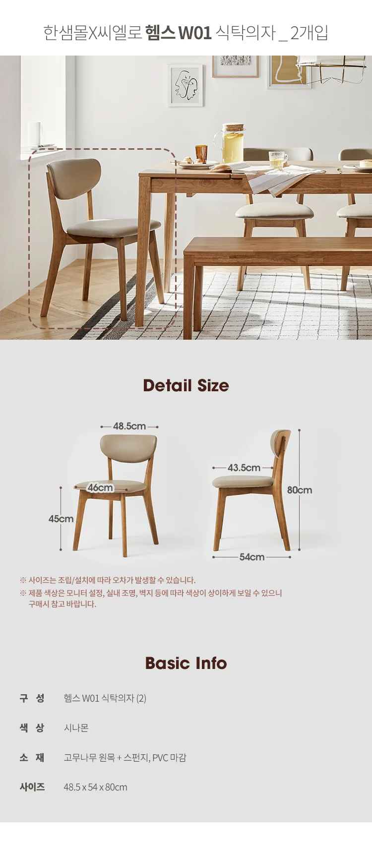 (한샘몰pick) 씨엘로 헴스 W01 식탁의자 2개입