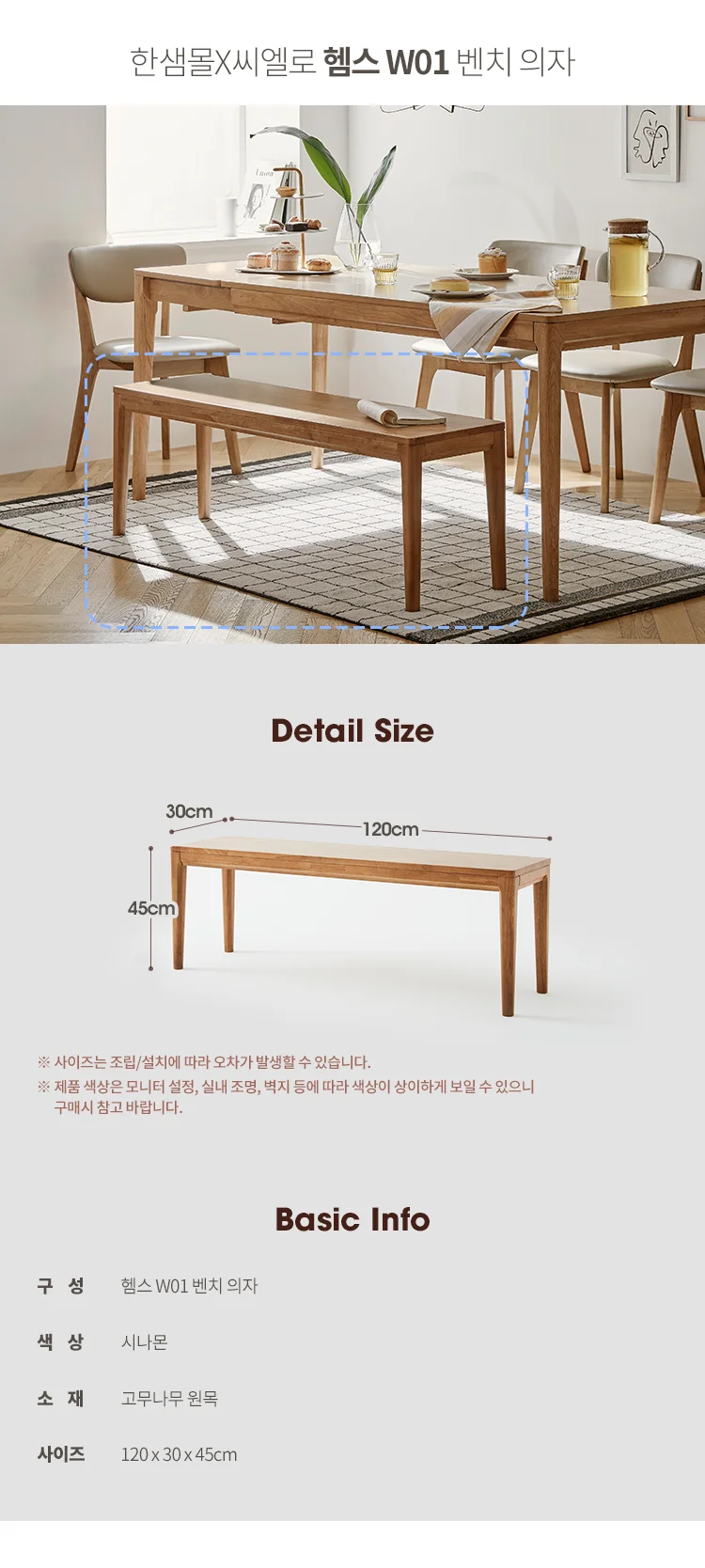 (한샘몰pick) 씨엘로 헴스 W01 벤치 의자