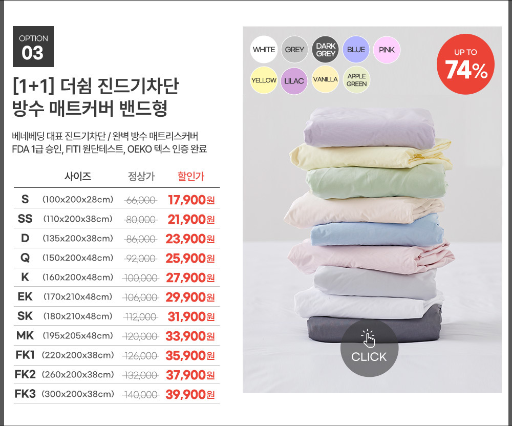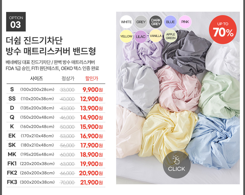 베네베딩 지퍼형 침대 매트리스 방수커버 (높이 8 ~ 30cm) (빈대차단,진드기차단,완벽방수,소음없는커버)