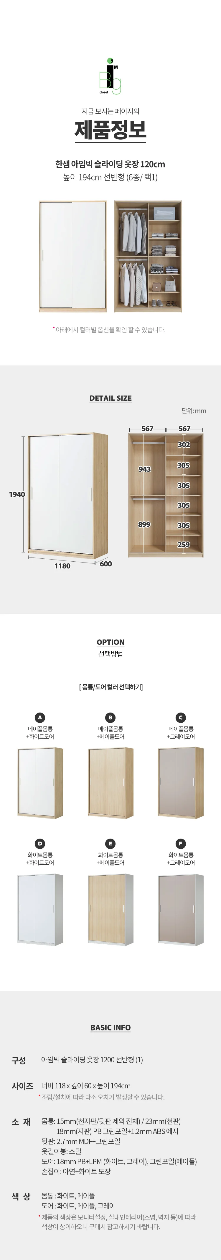아임빅 슬라이딩 옷장 120cm 선반형 6종