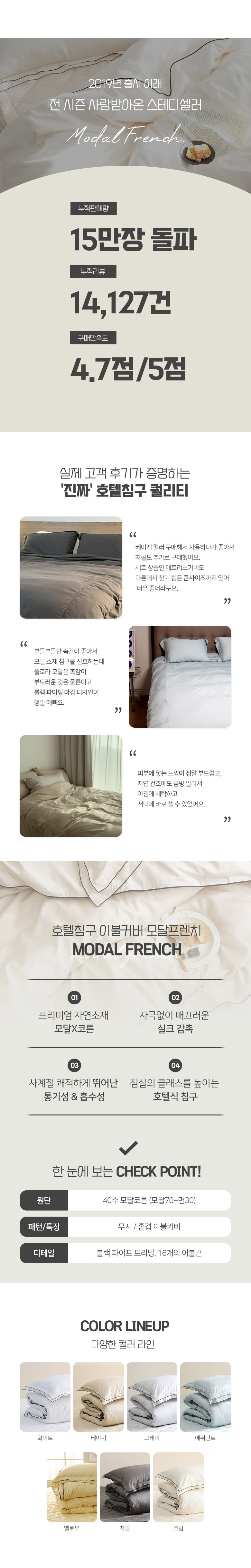 (원클릭풀세트)모달프렌치 프리미엄 호텔 이불커버 풀세트 SS/Q/K/EK