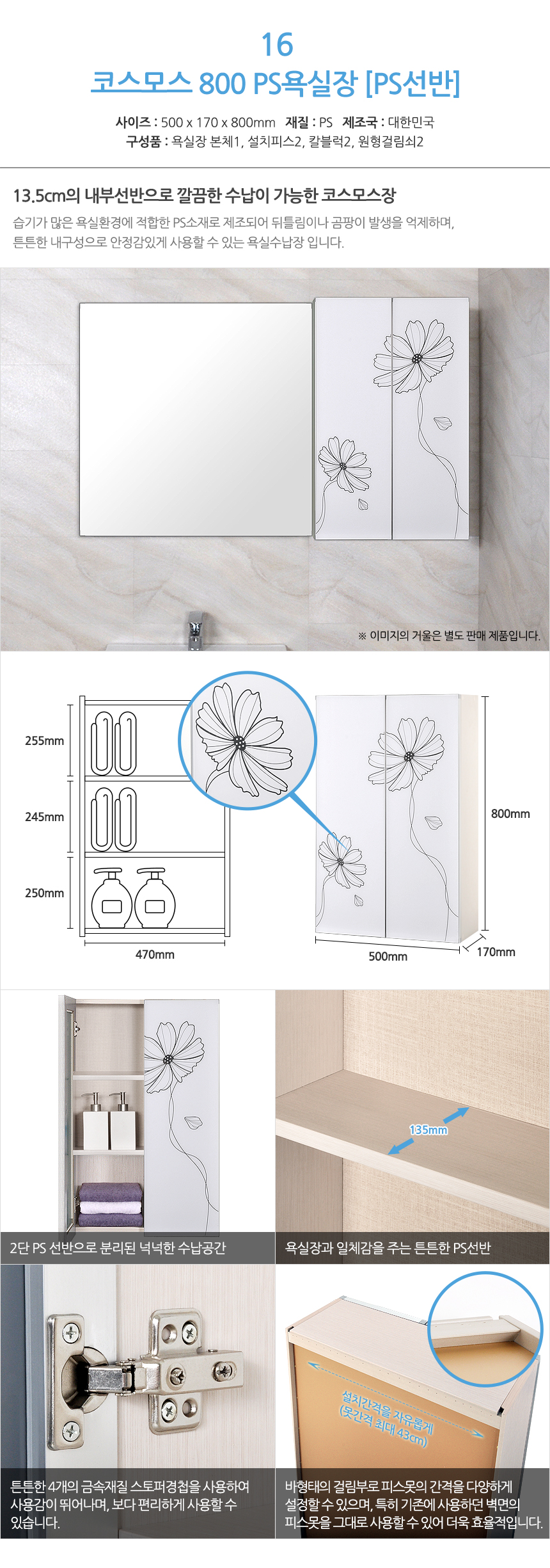 모아시스템즈 고급 PS 코스모스800 욕실수납장 PS선반 욕실장