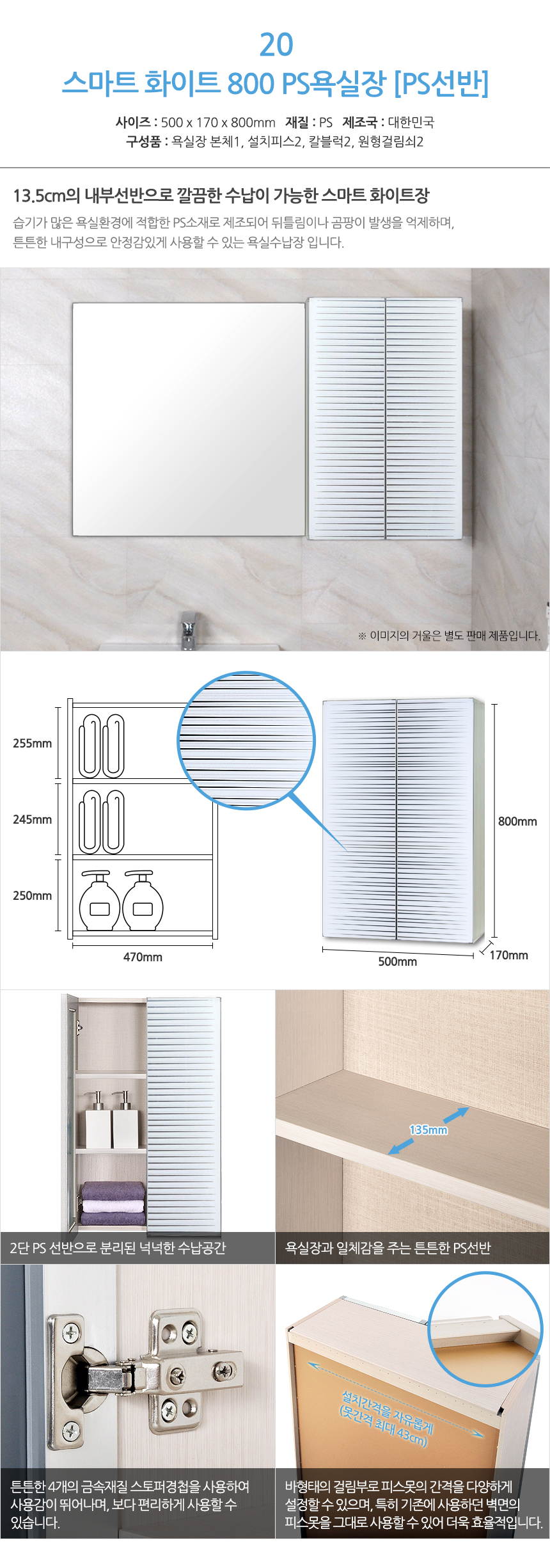 모아시스템즈 고급 PS 스마트화이트800 욕실수납장 PS선반 욕실장