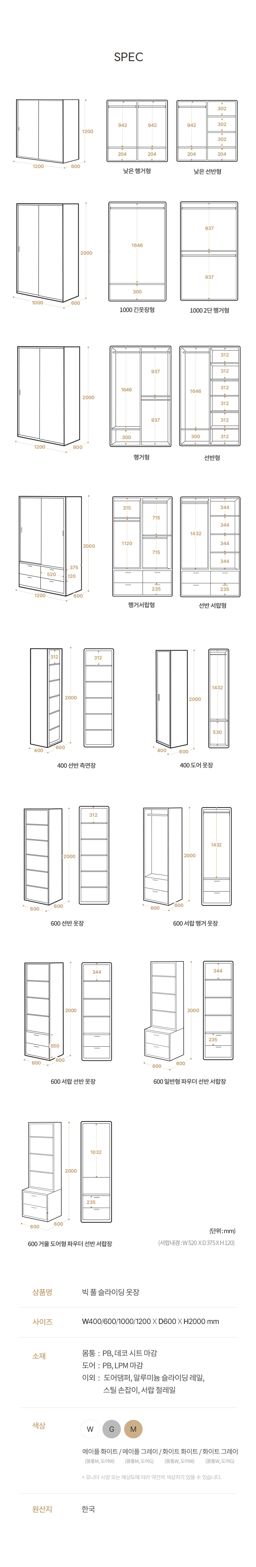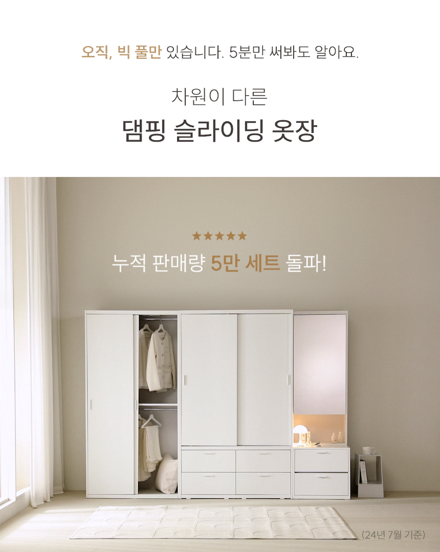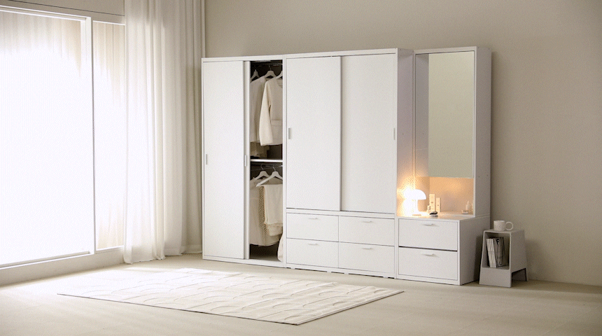 [특가 ~12/22]빅 풀 고급 댐핑도어 슬라이딩 옷장 (행거/선반/서랍)