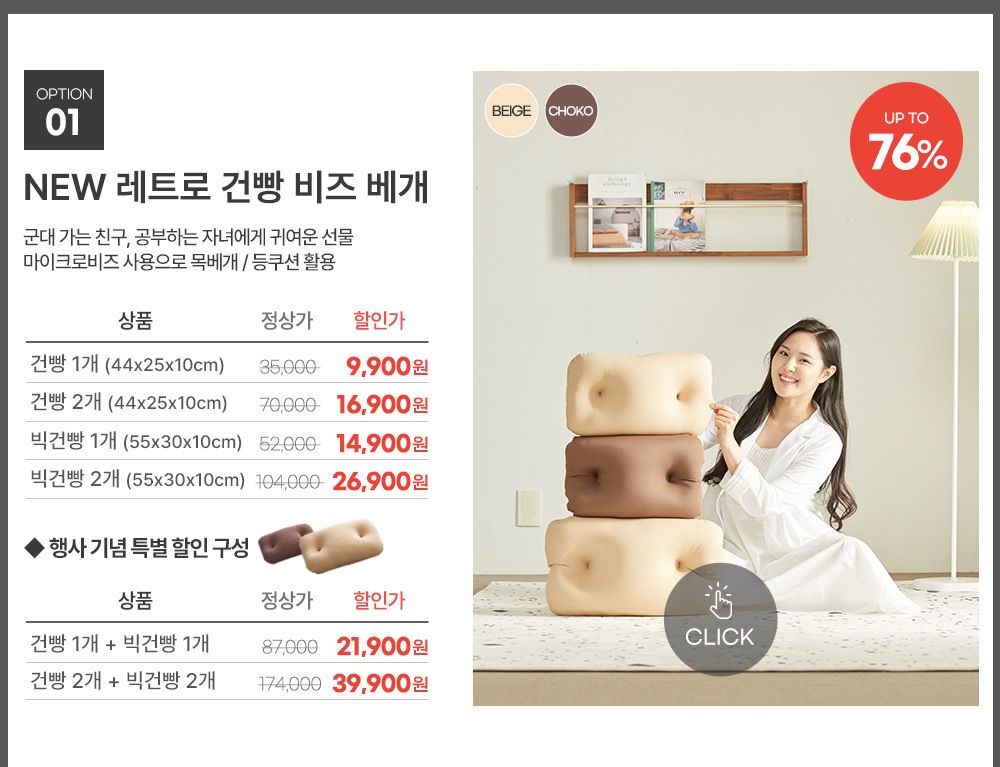 베네베딩 레트로 건빵 비즈 베개 2size 2color