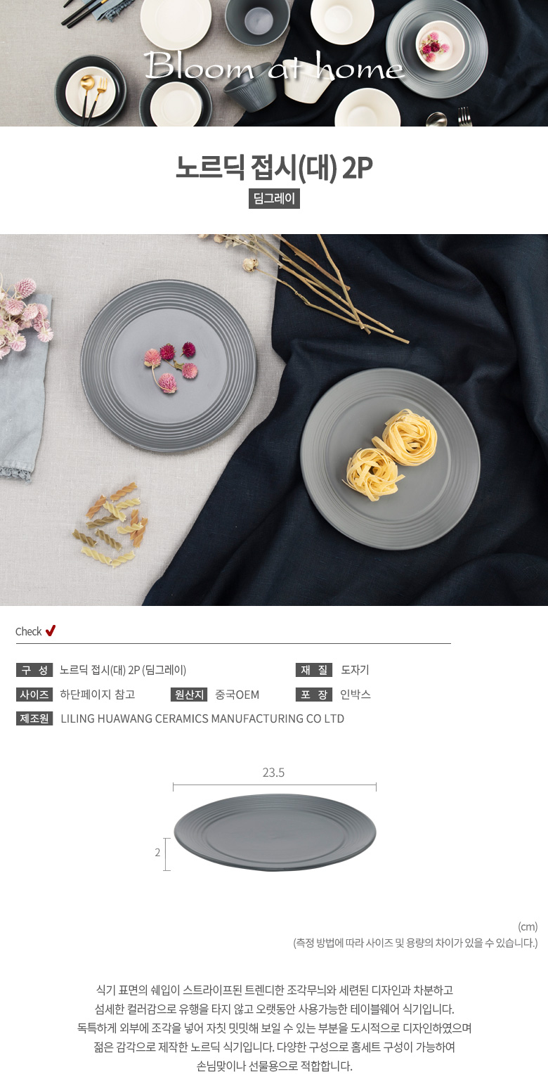 노르딕 접시 (대-딤그레이) 2P