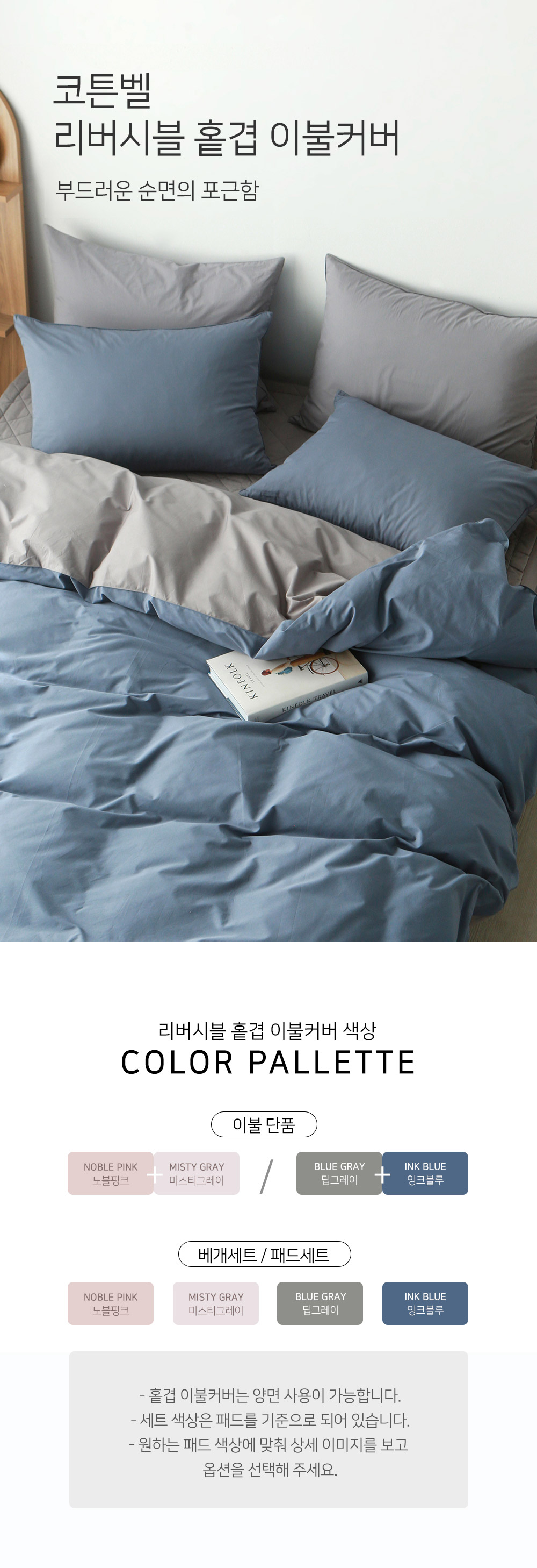 아망떼 코튼벨 순면40수 고밀도 광폭 리버시블 이불커버 베개세트 (SS/Q)