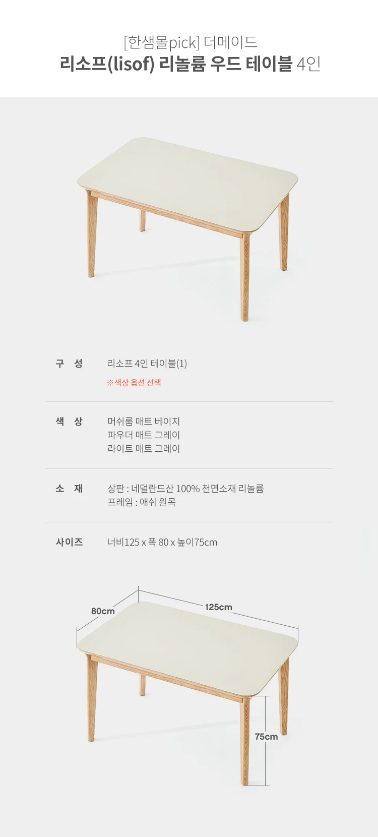 (한샘몰pick) 더메이드 리소프 리놀륨 4인 원목 식탁 테이블