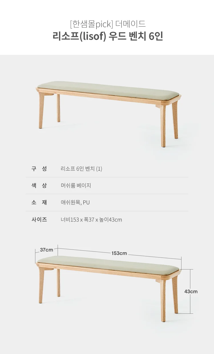 (한샘몰pick) 리소프 원목 벤치 6인
