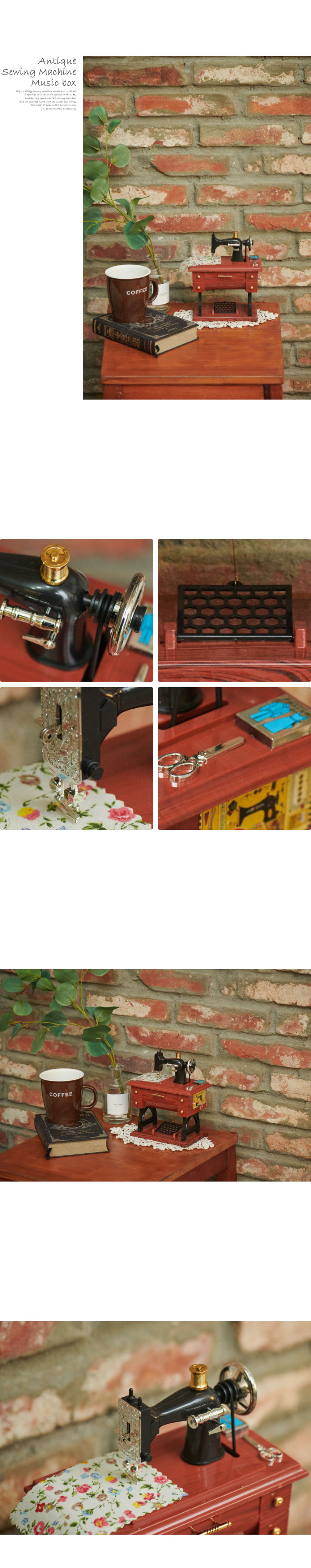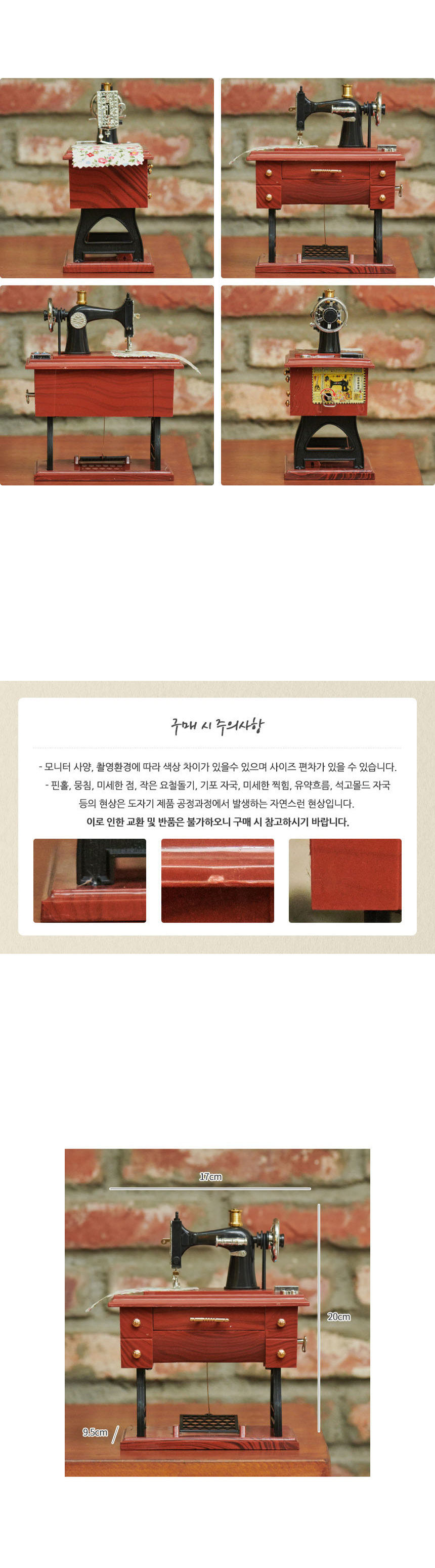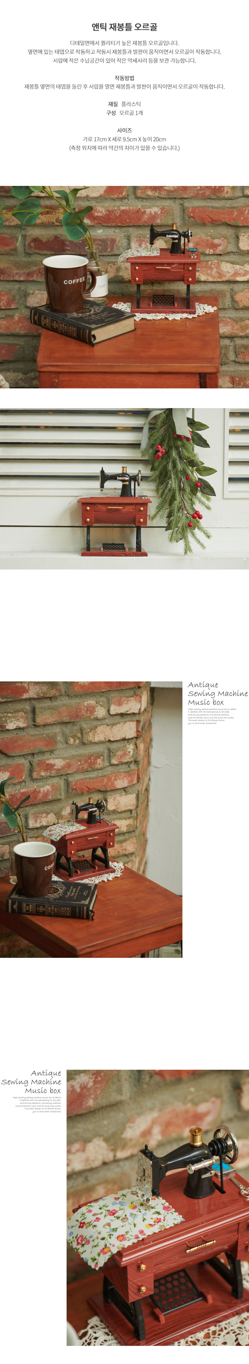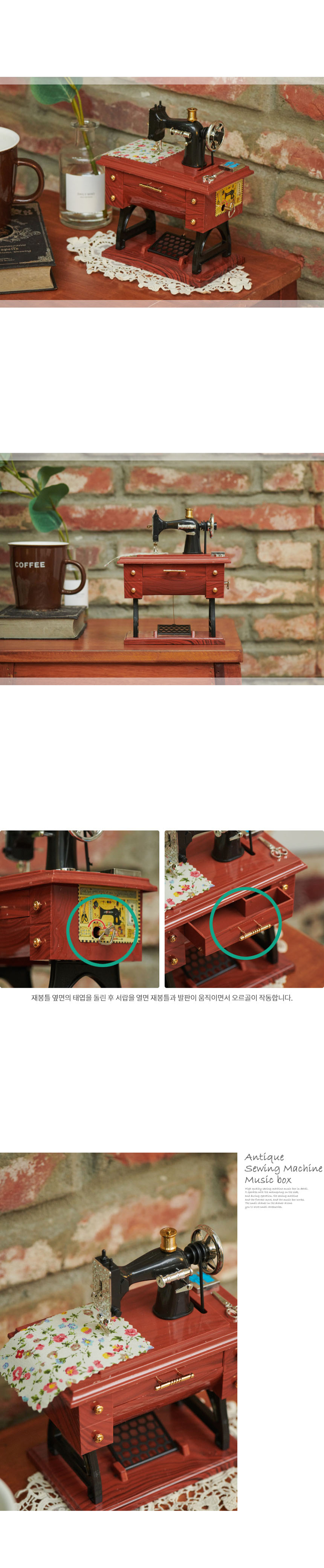 작동 시 재봉틀과 발판이 움직이며 오르골이 작동합니다.