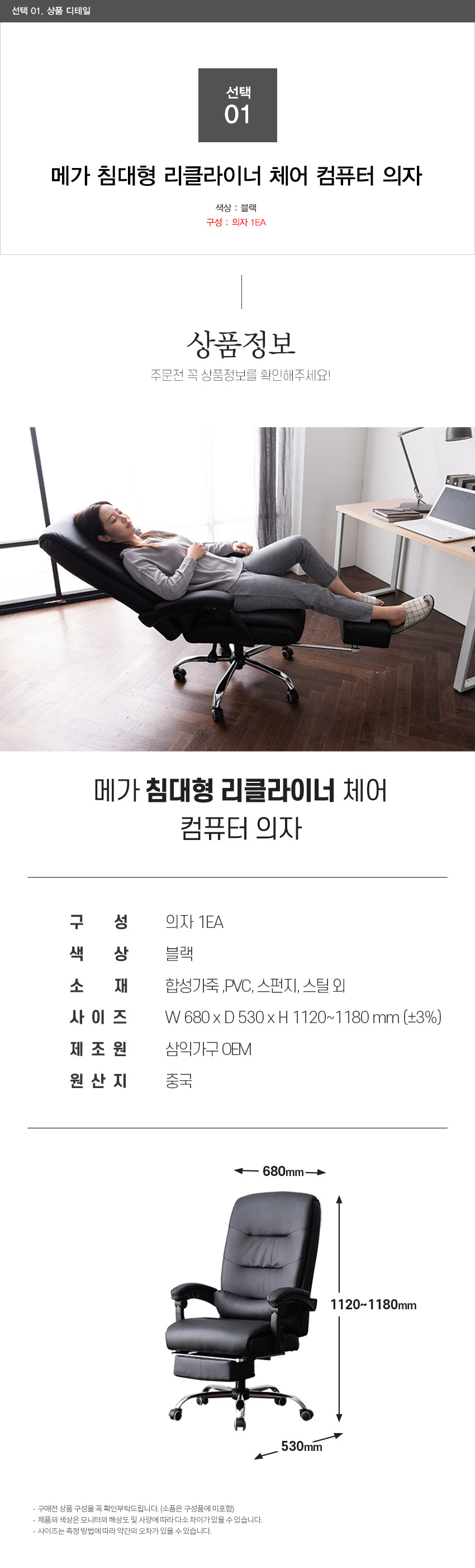 삼익가구 침대형 리클라이너 컴퓨터 의자 시리즈