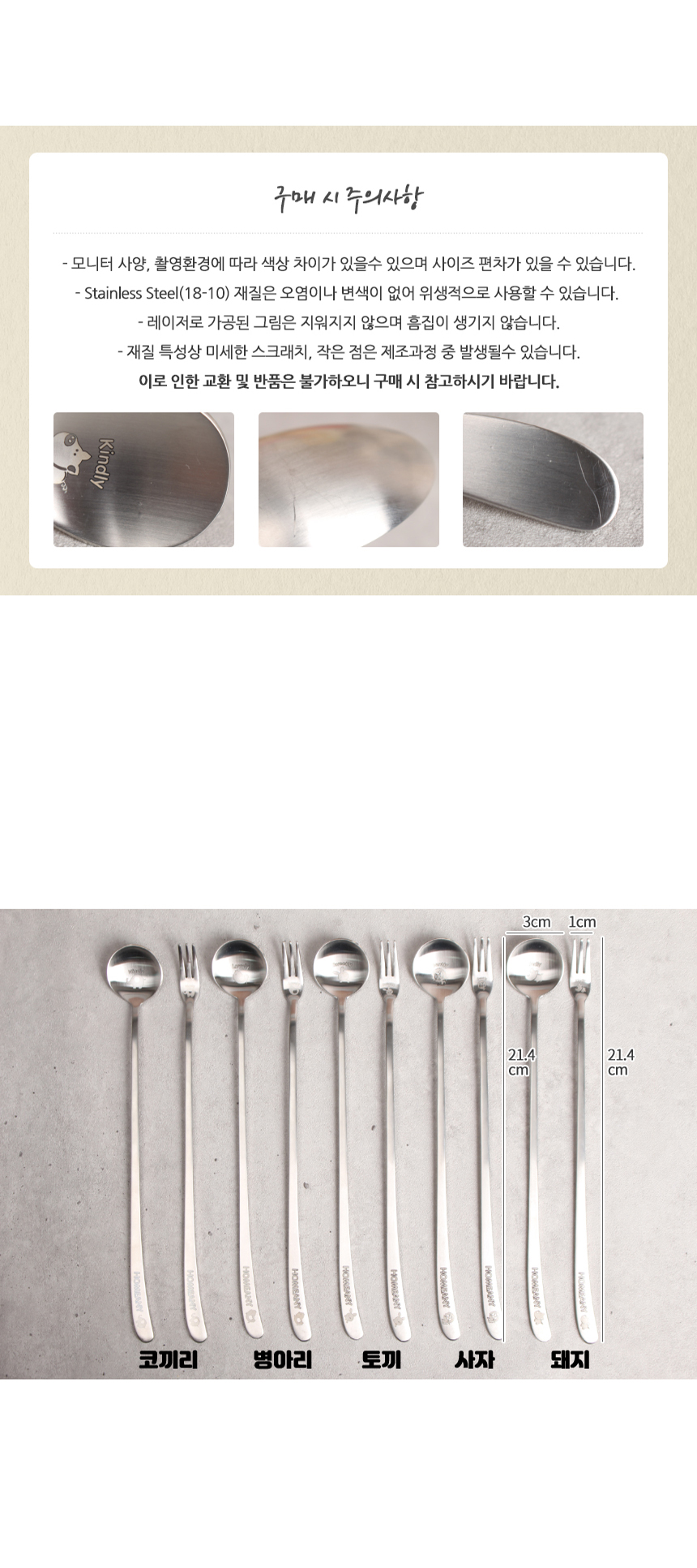 홈애니 둥근 롱 티스푼, 롱 티포크 (10type)