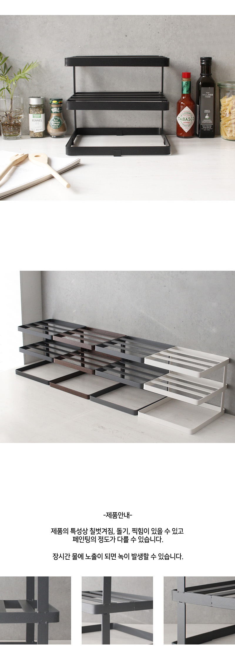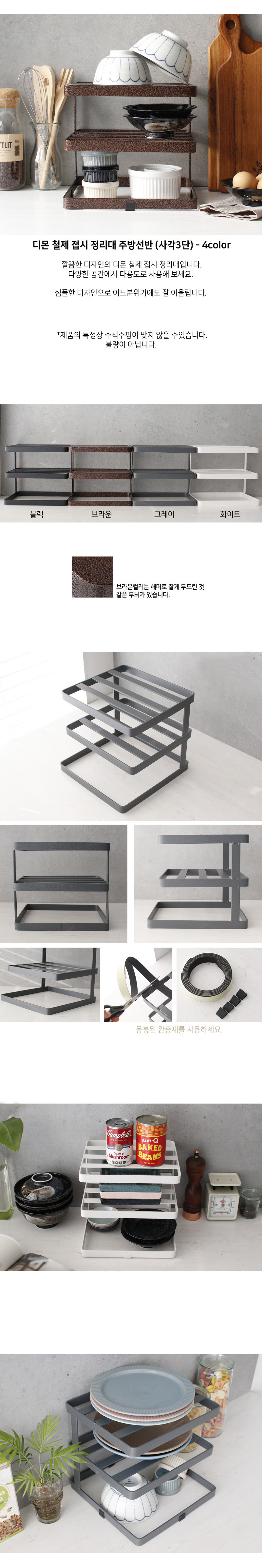 * 디몬 철제 사각3단 접시 정리대 주방선반(4color) 입니다.