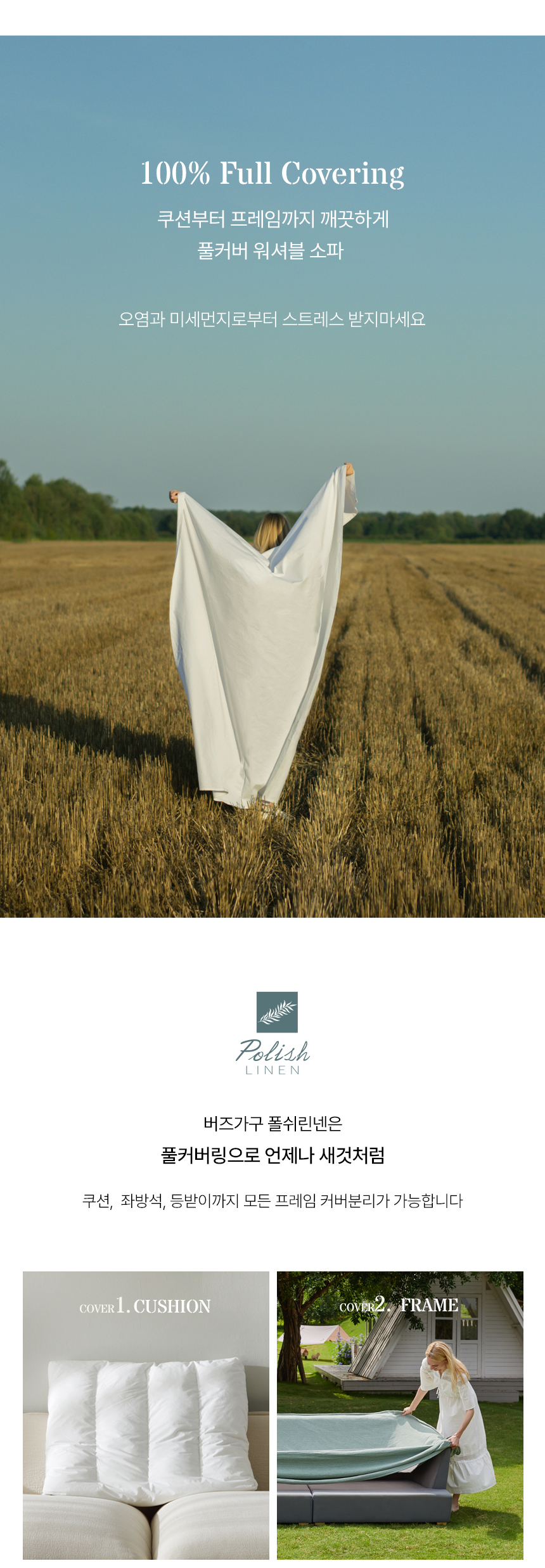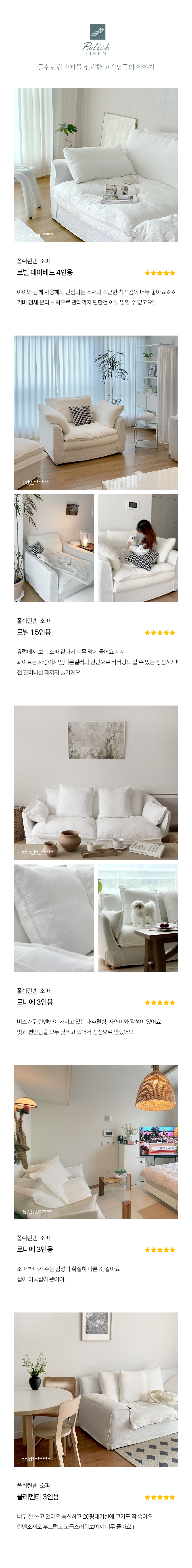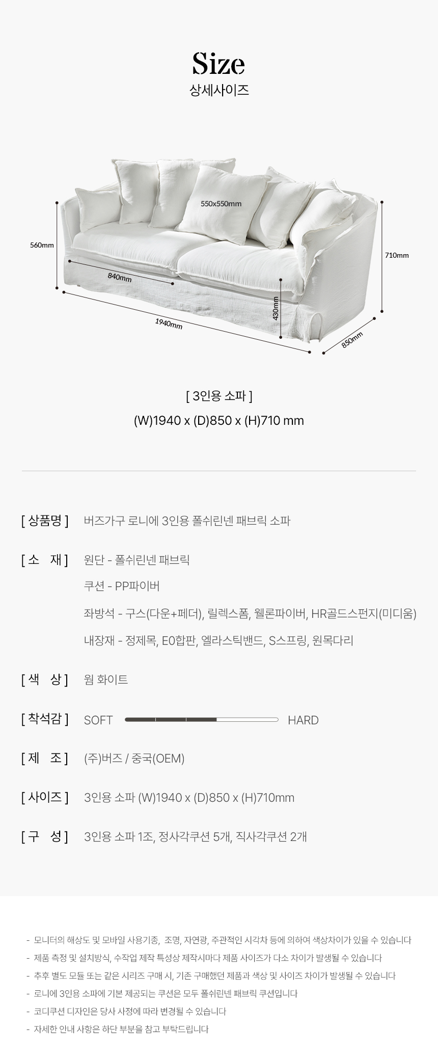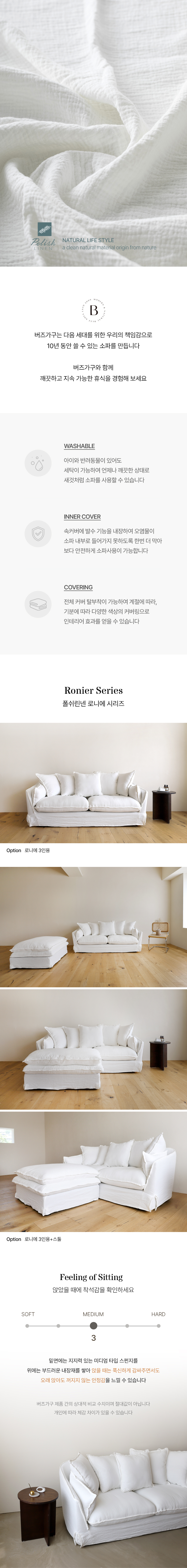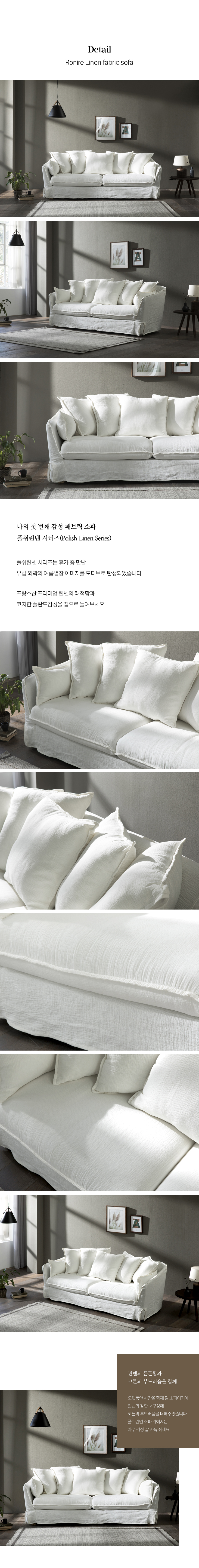 버즈가구 로니에 3인용 폴쉬 린넨 워셔블 패브릭소파 화이트 PL107