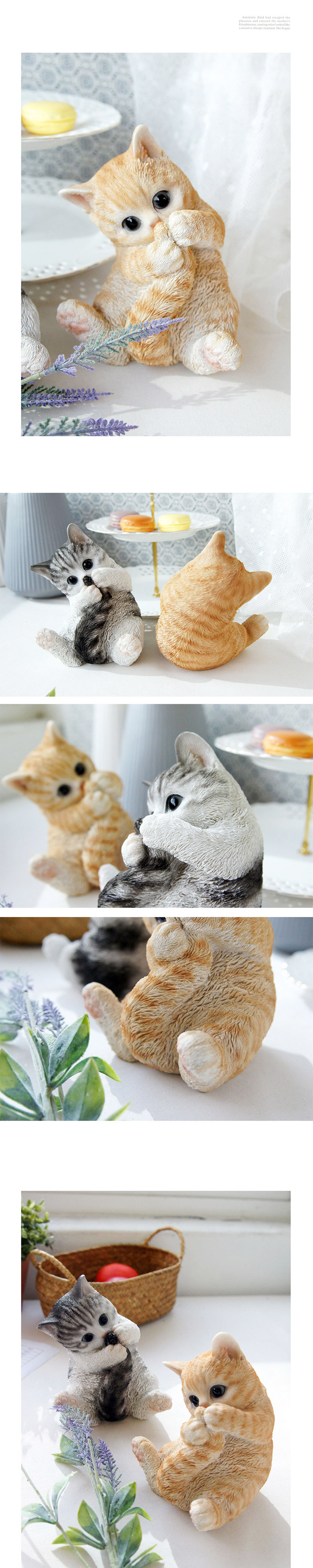 꼬리를 잡고 노는 귀여운 고양이 미니어쳐입니다.