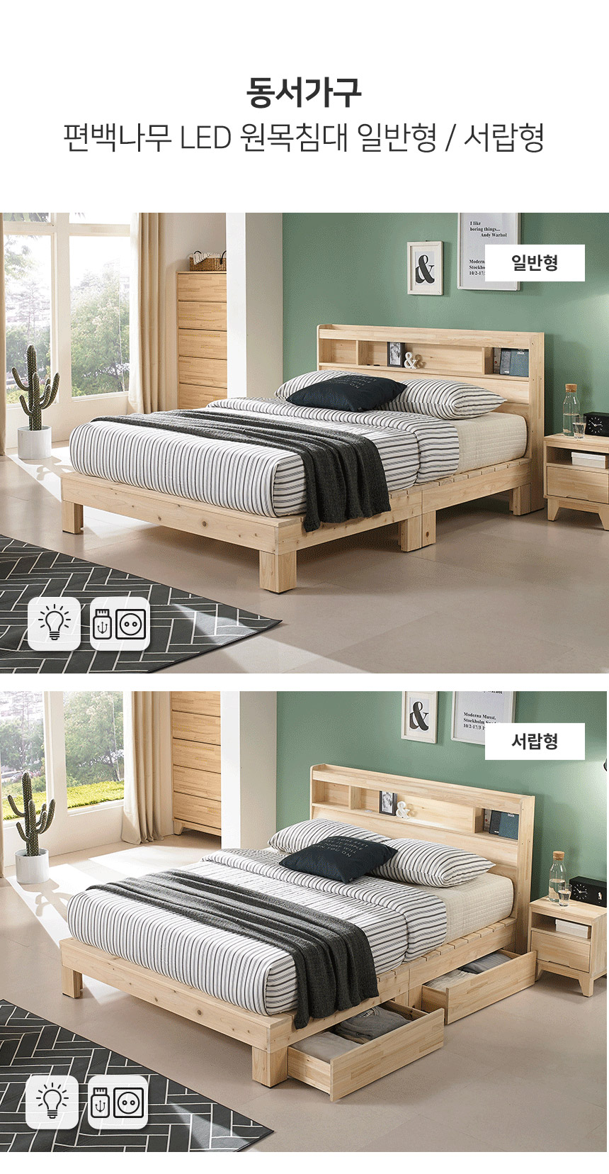 프리미엄 수납헤드형 편백침대 SS / Q (12종 2sizes) DF639387