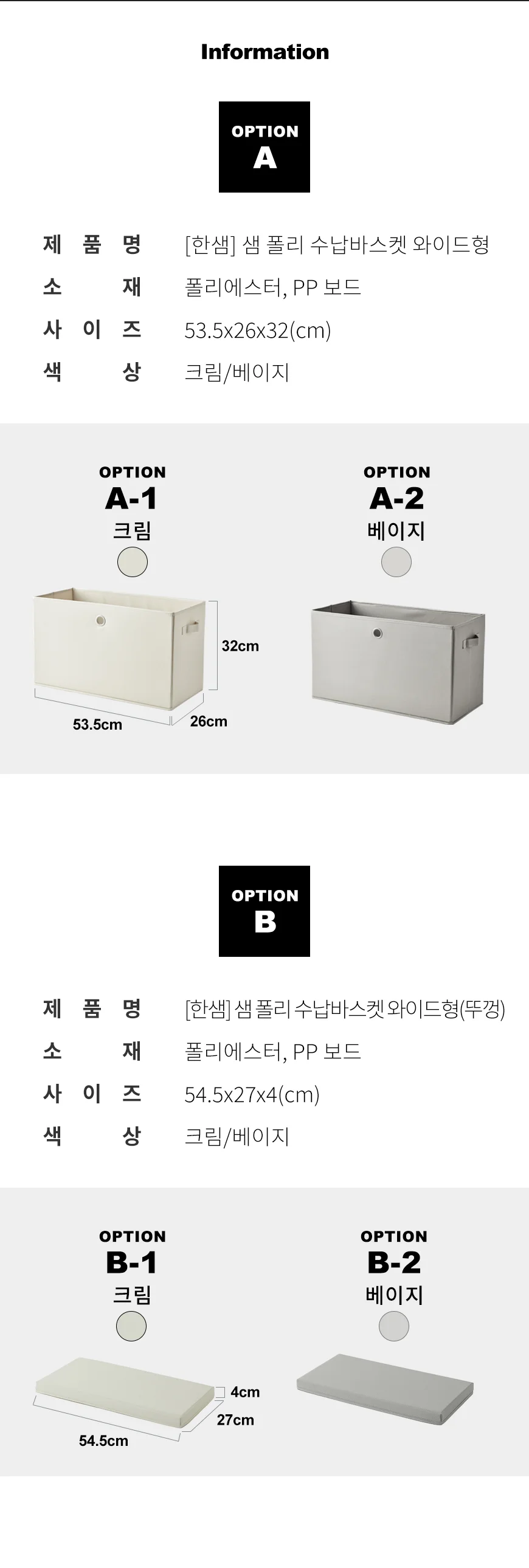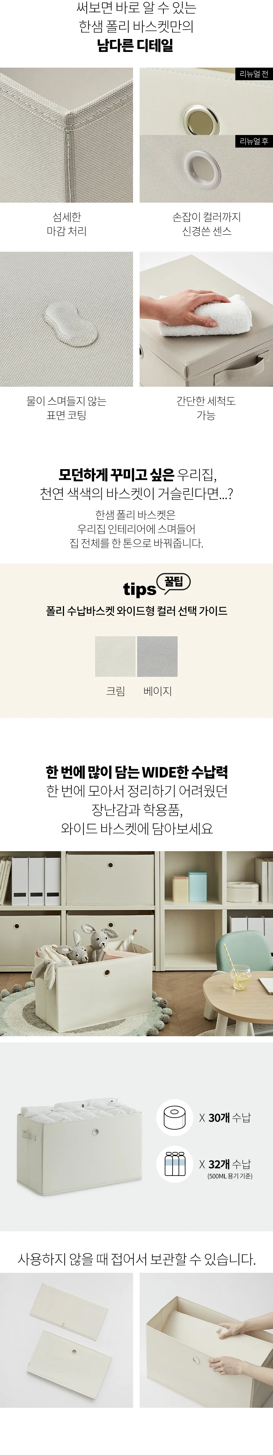 샘폴리 수납 리빙바스켓 와이드형 2P (2종 택1)
