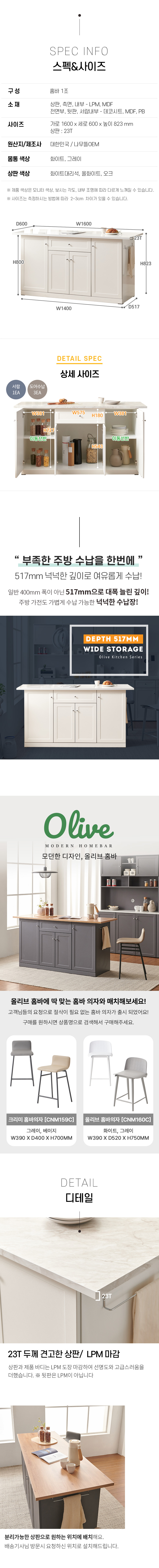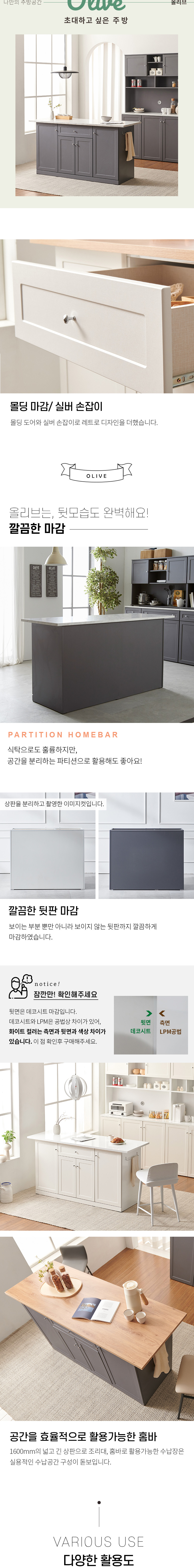 올리브 홈바 아일랜드 식탁 1600 수납형 MWF062C
