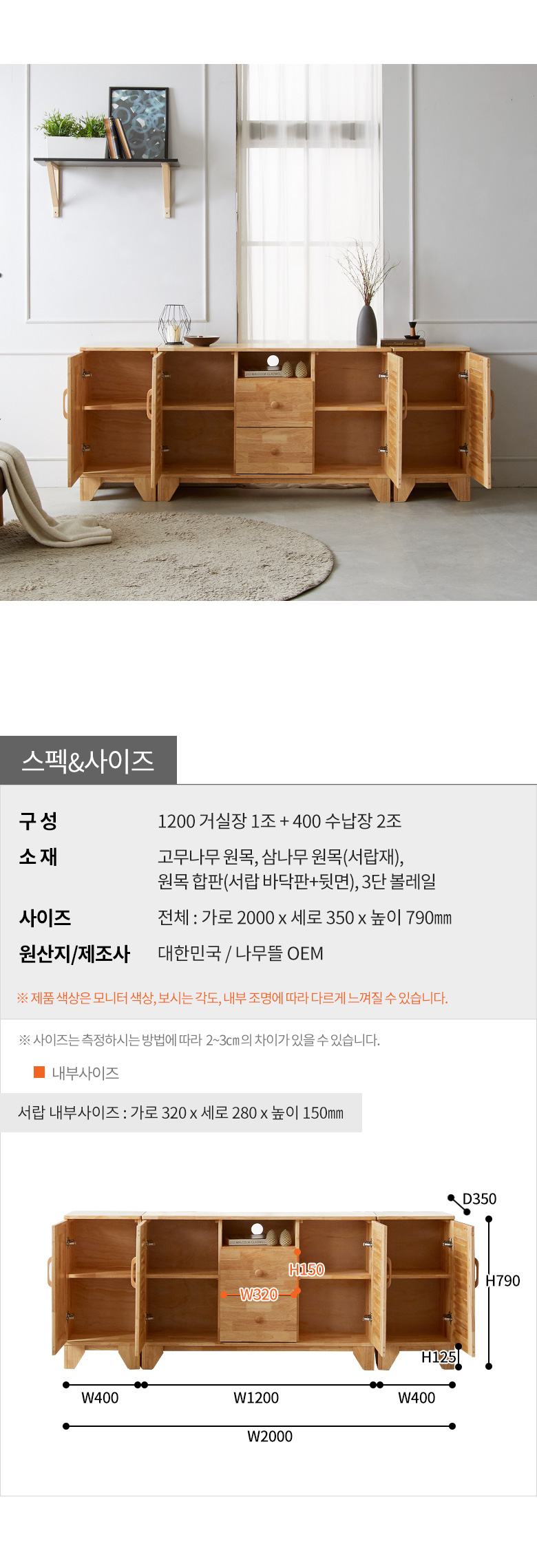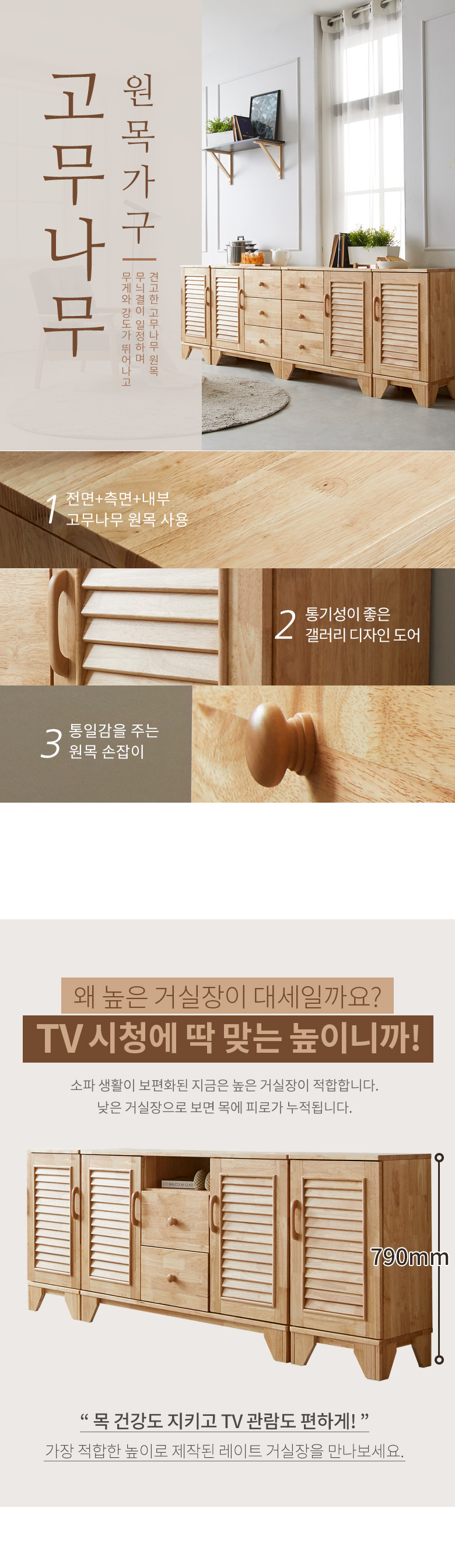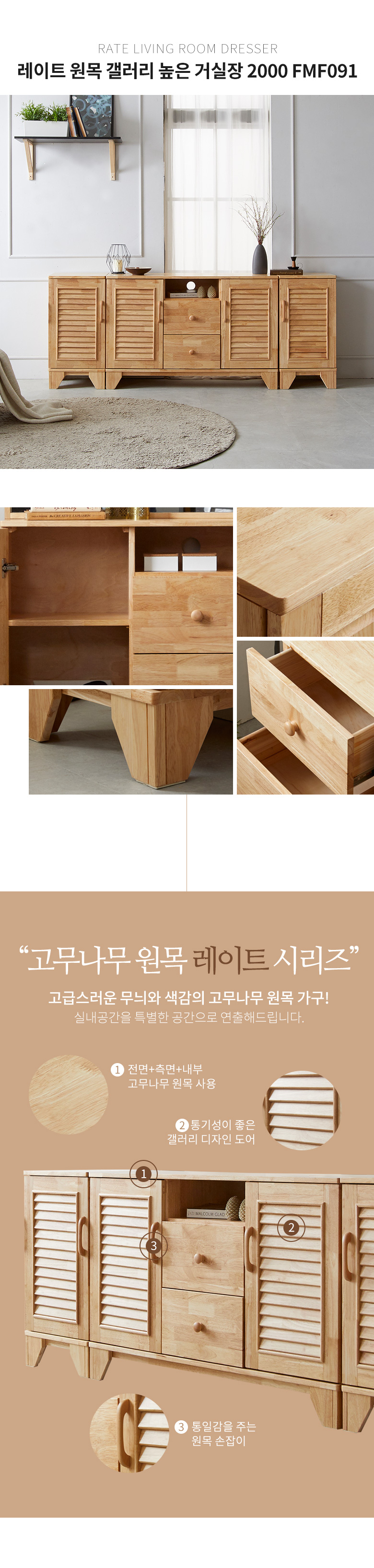 [나무뜰] 레이트 원목 갤러리 높은 거실장 2000 FMF091C
