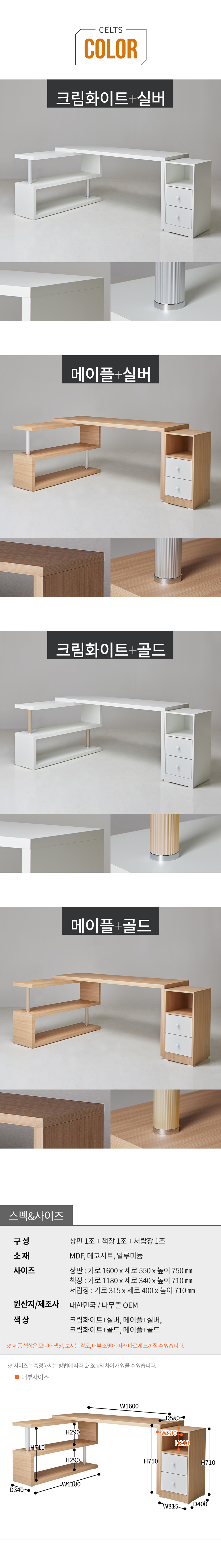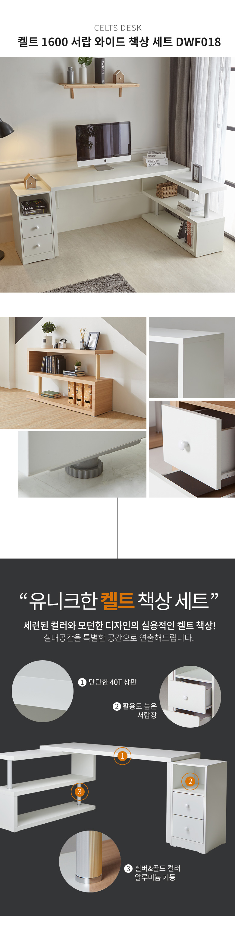 켈트 1600 서랍 와이드 책상 세트 DWF018C