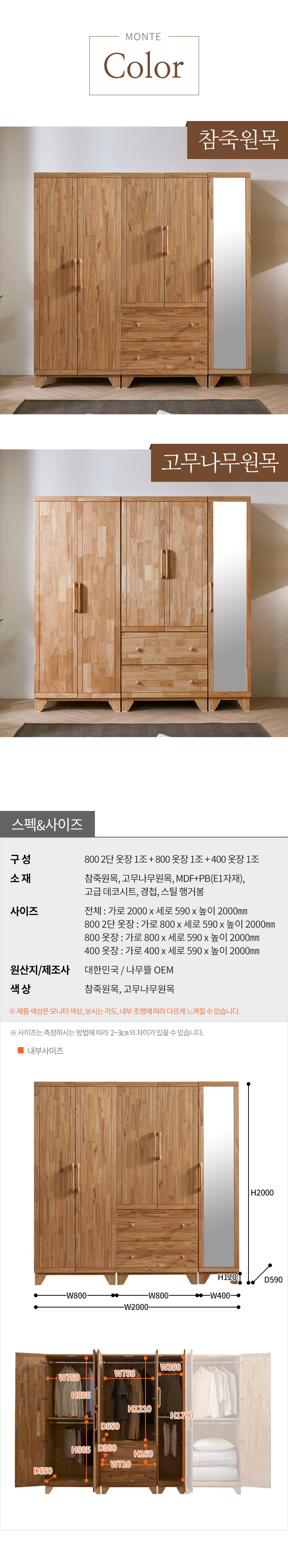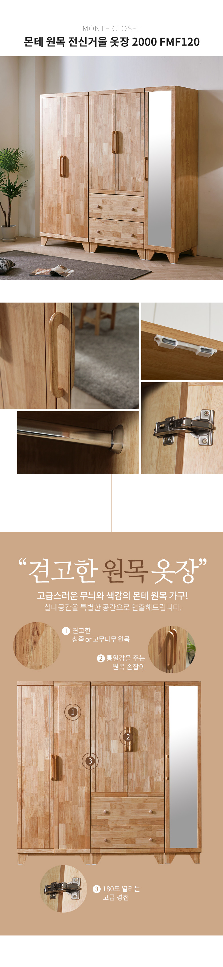 몬테 원목 전신거울 옷장 2000 FMF120C