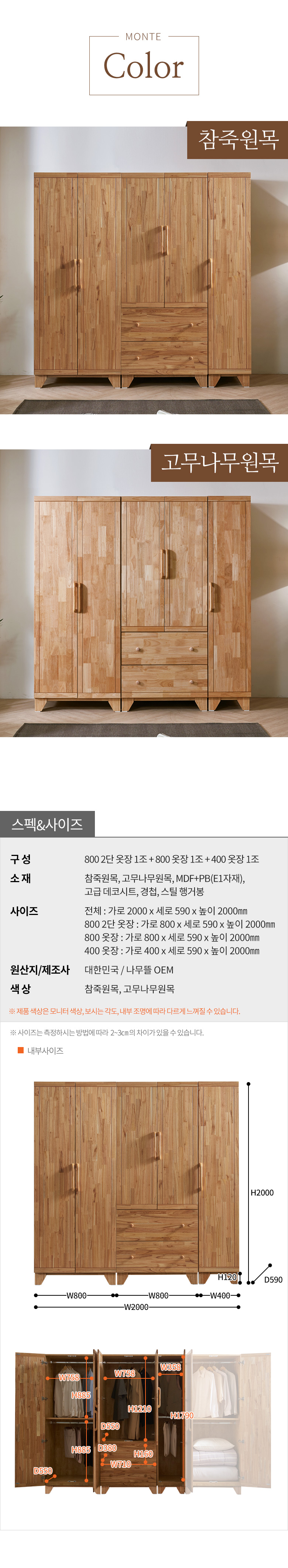 몬테 원목 옷장 2000 FMF119C
