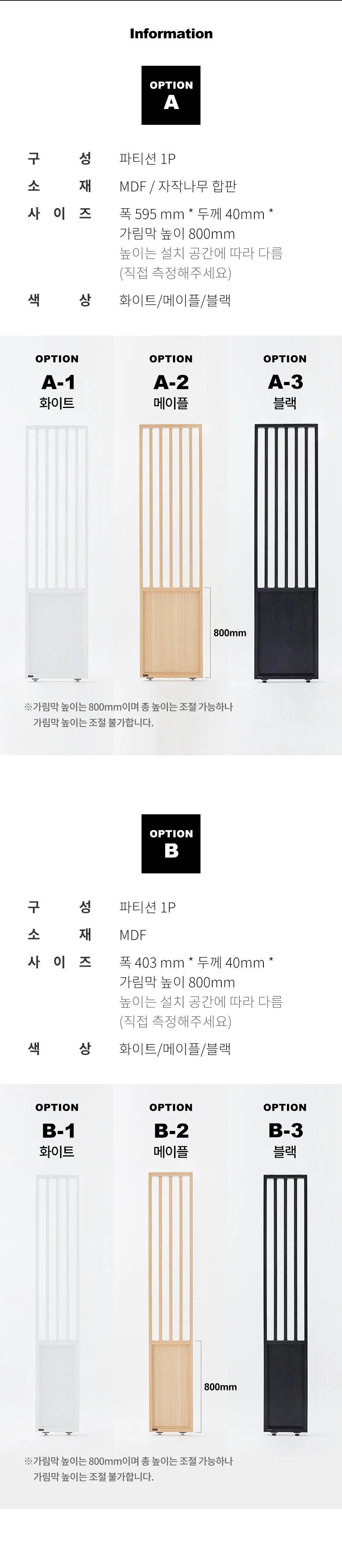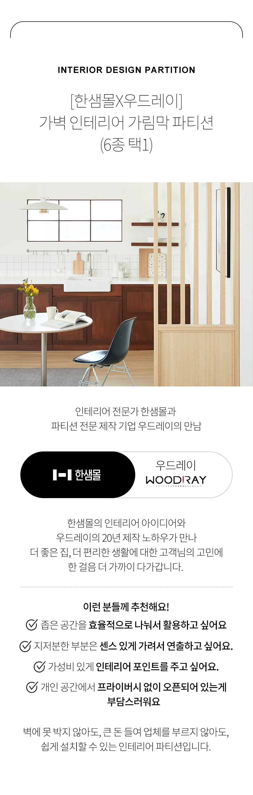(한샘몰pick) 우드레이 가벽 인테리어 가림막 파티션 (6종 택1)