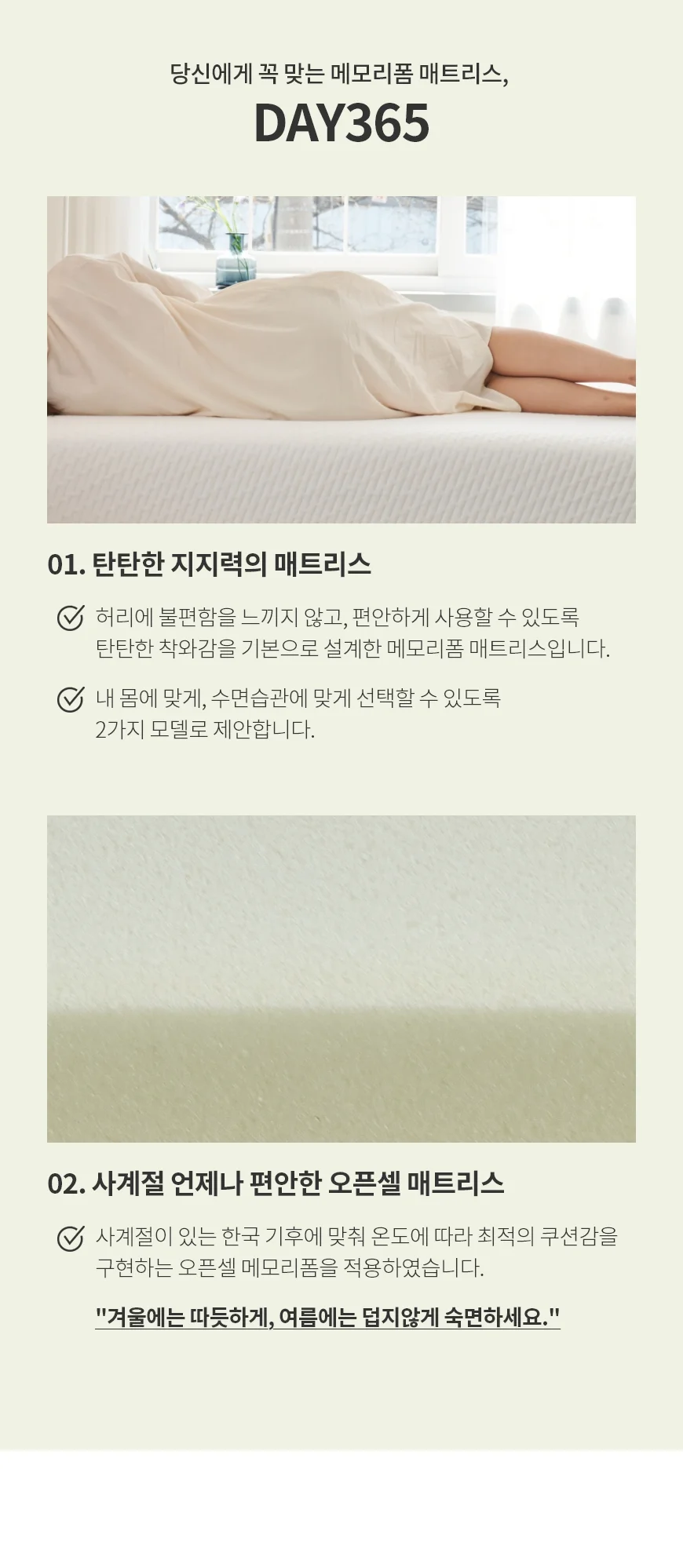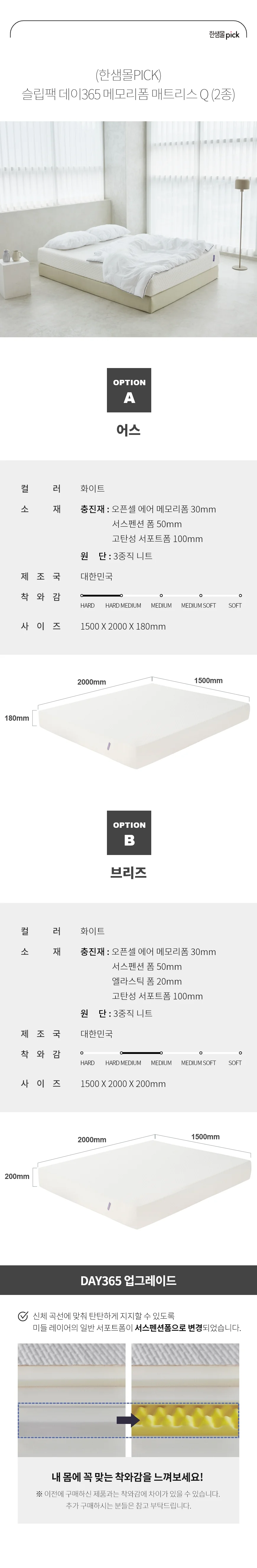 (한샘몰pick) 데이365 메모리폼 매트리스 Q (2종)