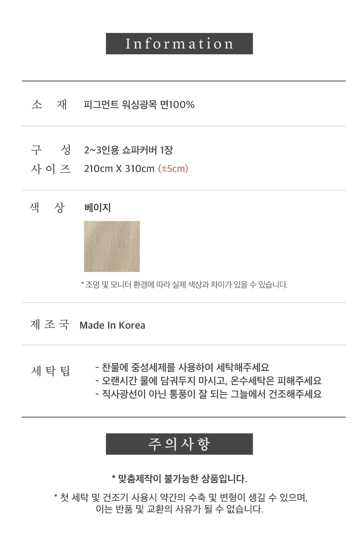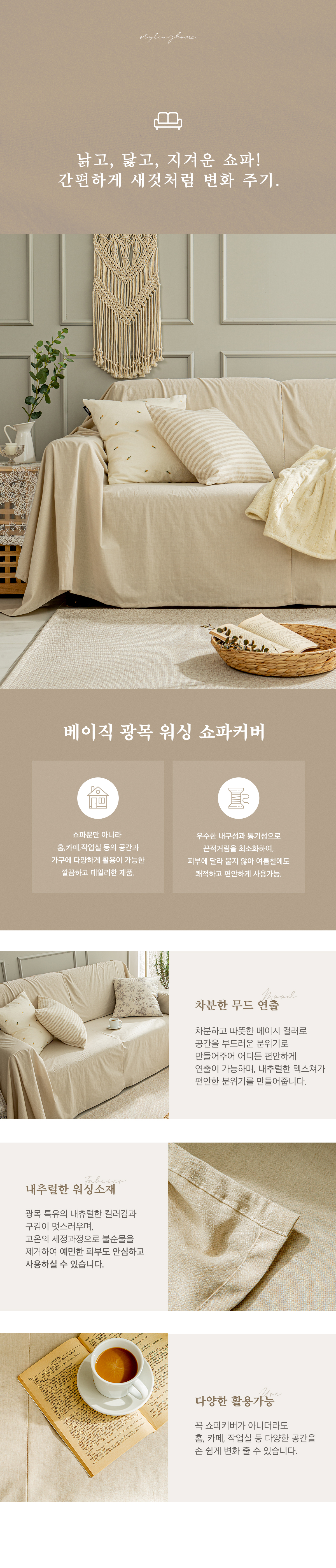 베이직 워싱광목 베이지 쇼파커버