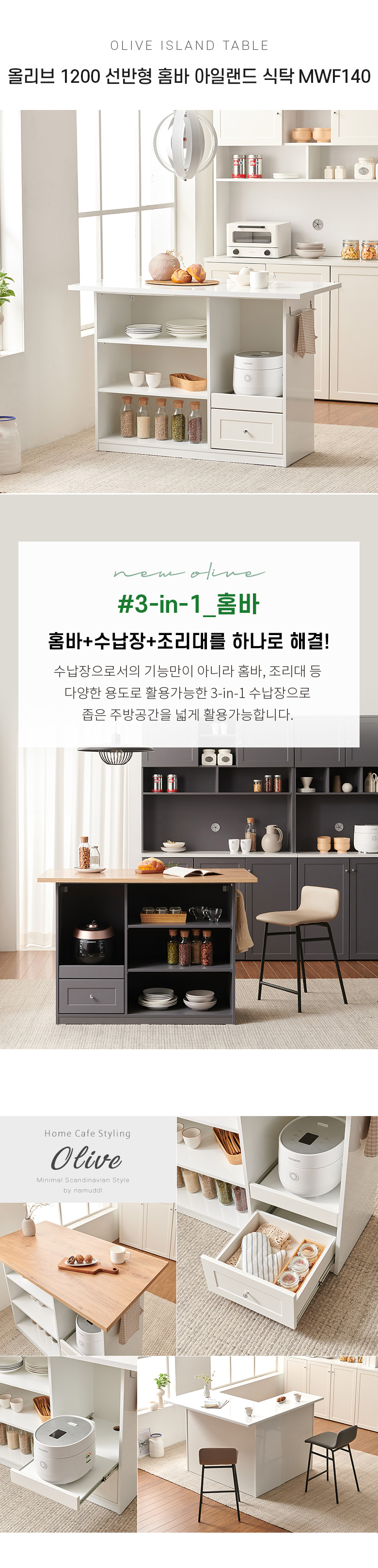 올리브 1200 선반형 홈바 아일랜드 식탁 MWF140C