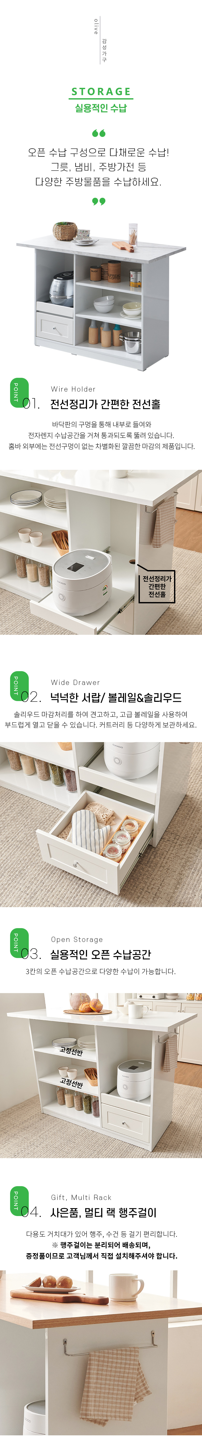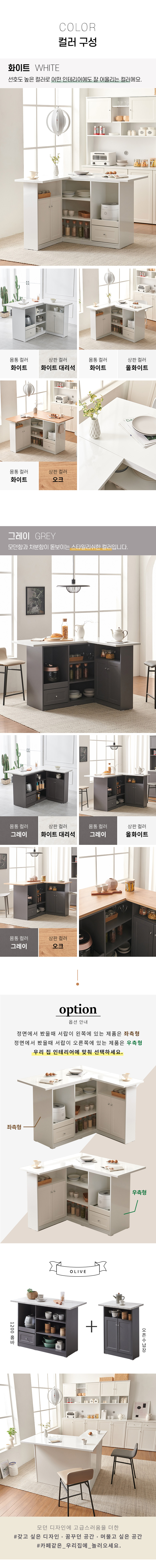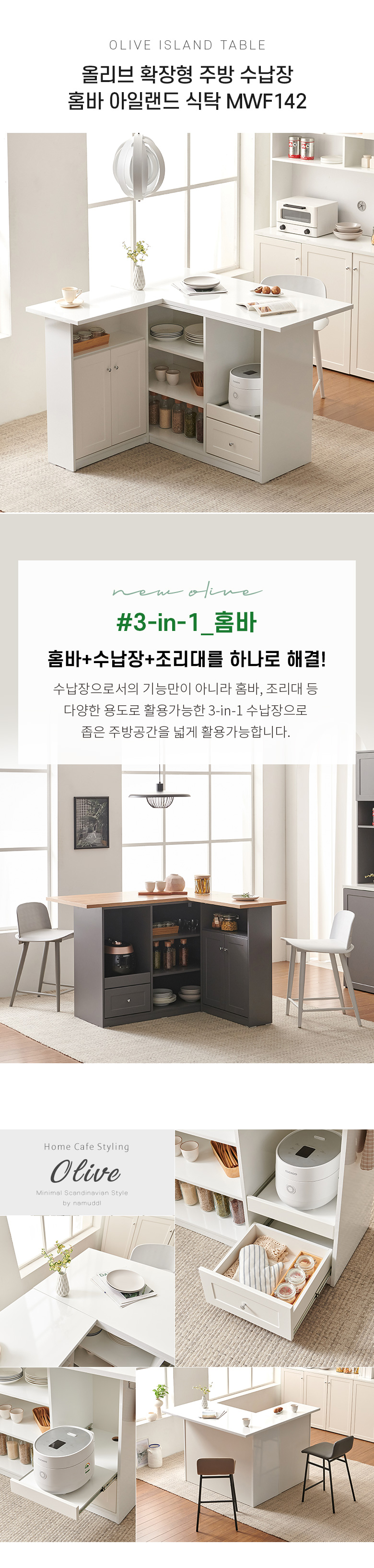올리브 확장형 주방 수납장 홈바 아일랜드 식탁 MWF142C