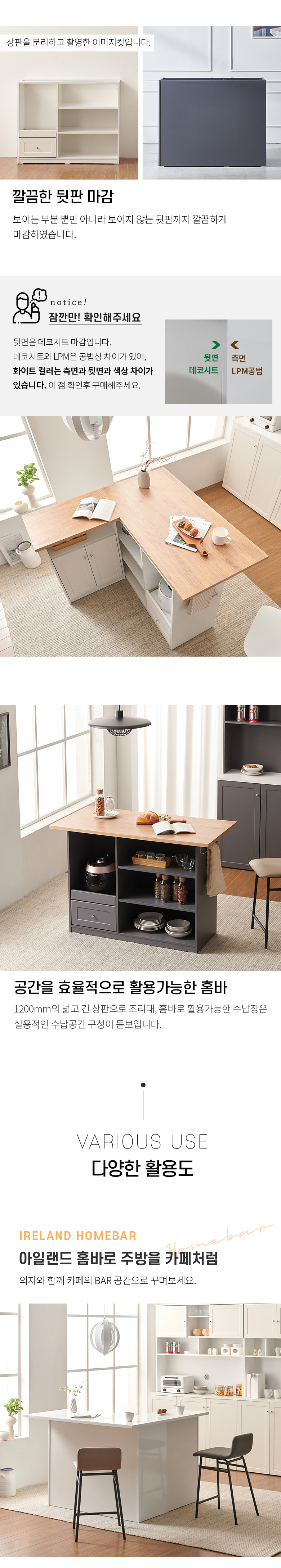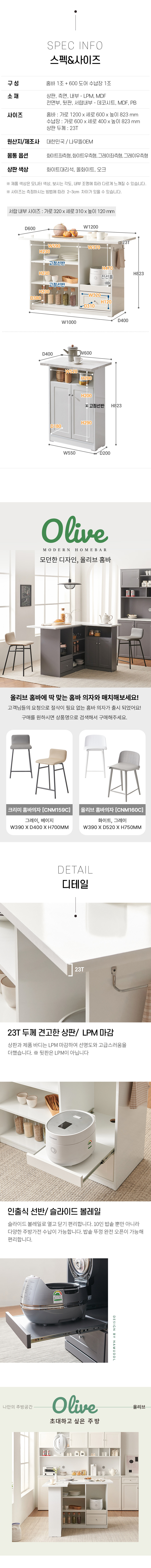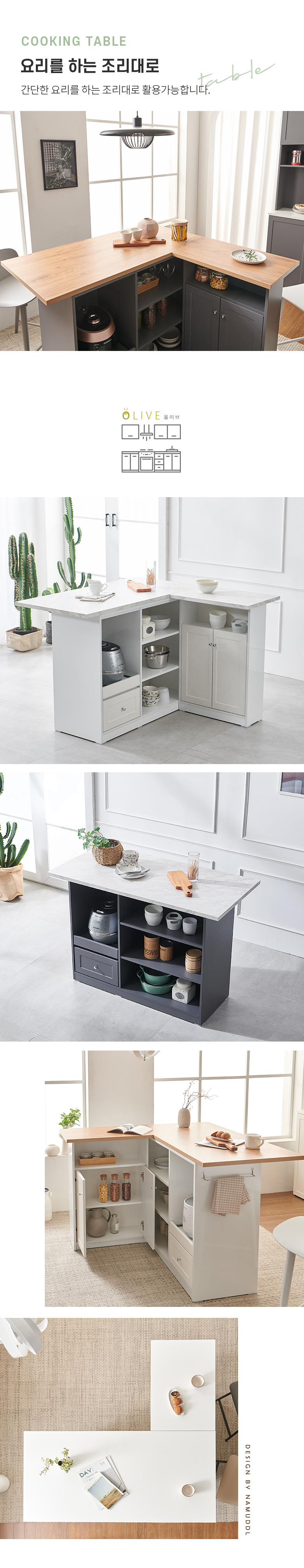 올리브 확장형 주방 수납장 홈바 아일랜드 식탁 MWF142C