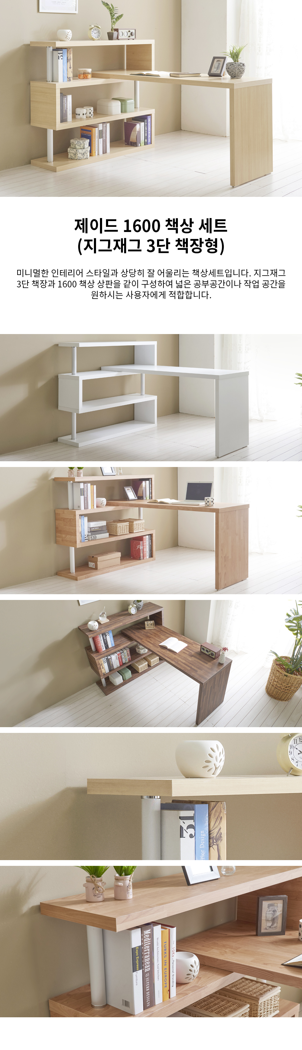 세컨드컨테이너 제이드 1600 책상 세트 (지그재그 3단 책장형)